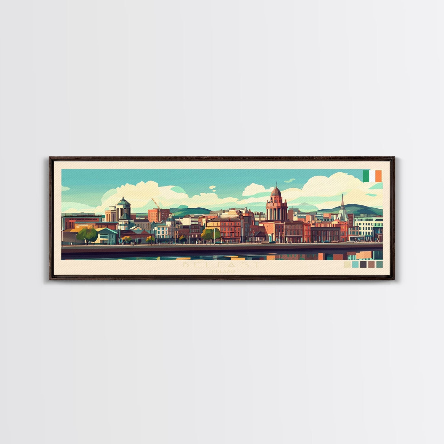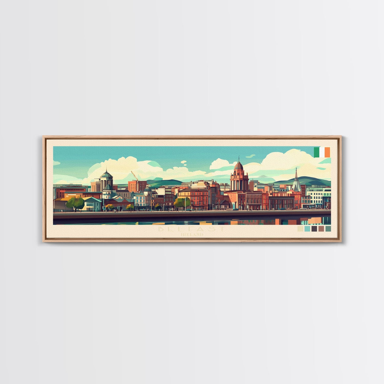 Belfast, Ireland Travel Poster Panoramic Canvas Print, Belfast, Ireland Painting, Ireland Art, Belfast Travel Art, Guest Room Painting