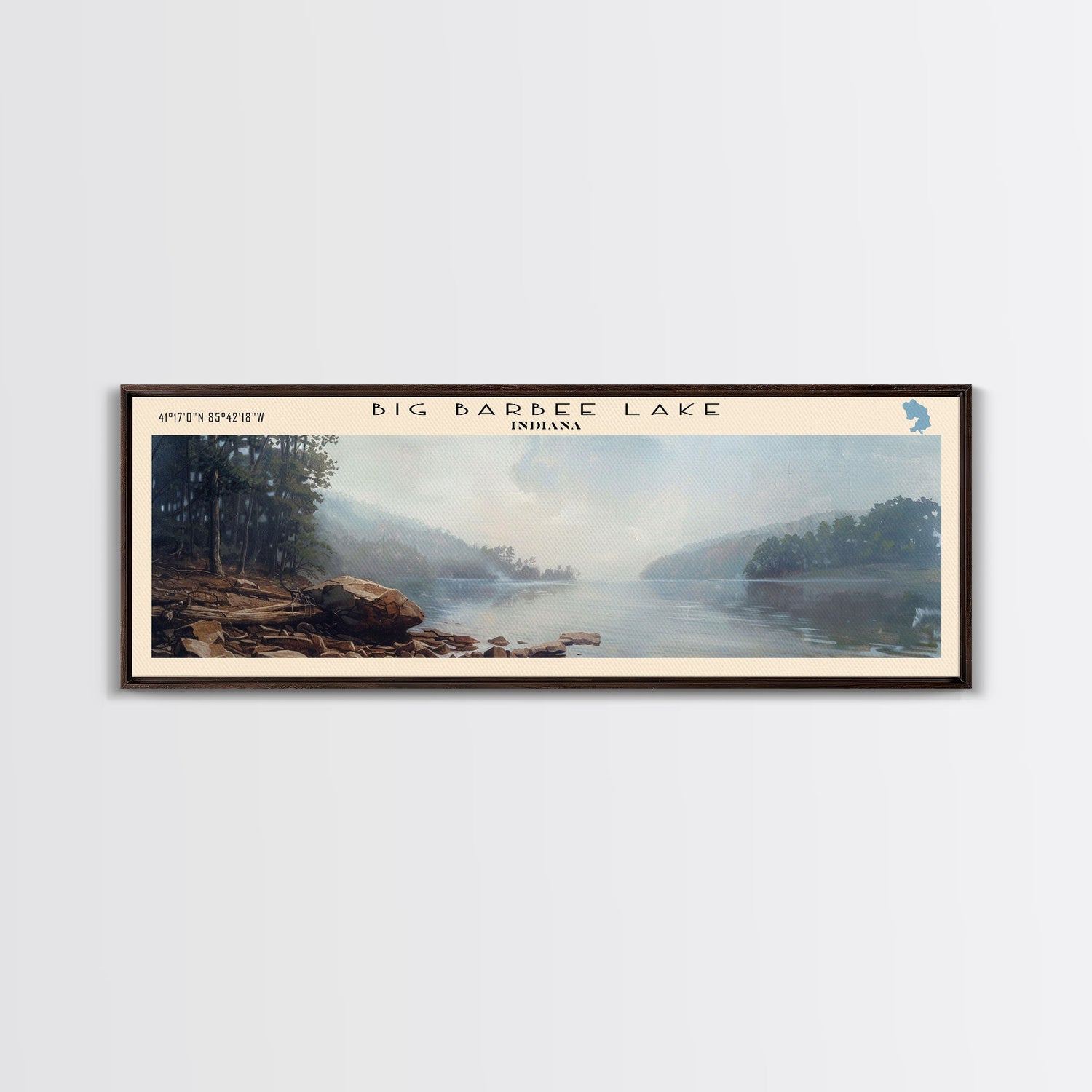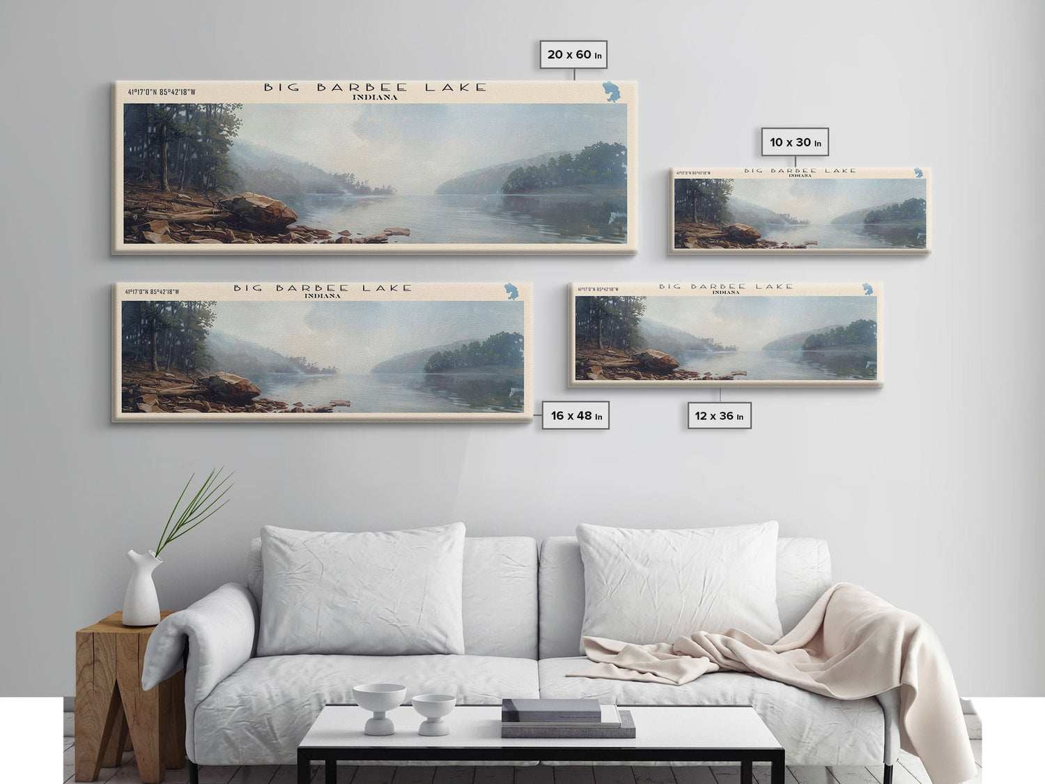 Big Barbee Lake Indiana Framed Canvas Print, Panoramic Lake House Art, Scenic Painting, Travel Poster, Rustic Decor, Nature Scene
