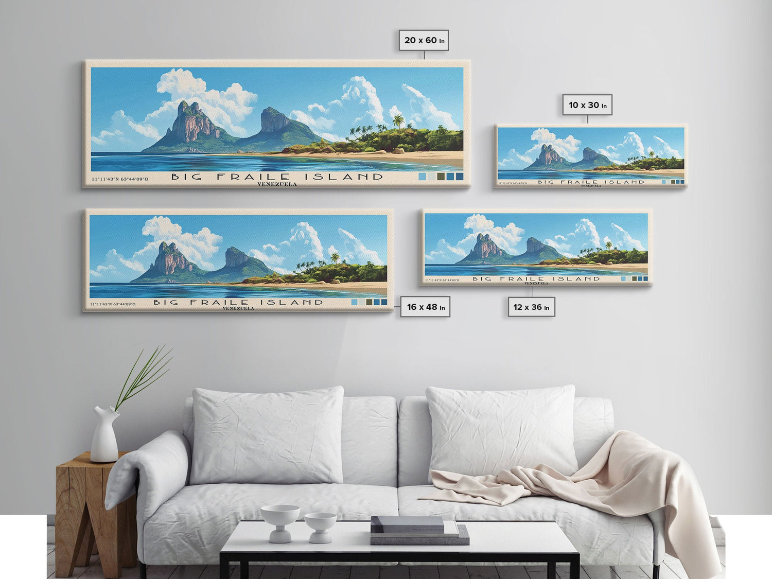 Big Fraile Island, Venezuela Panoramic Beach Print, Vacation Gift, Venezuela Wall Art, Framed Canvas Print, Framed Beach Painting