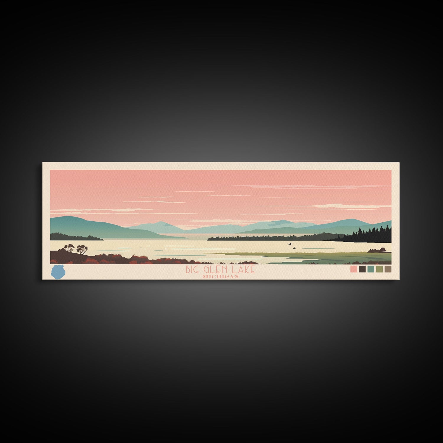 Big Glen Lake Michigan Framed Canvas Print, Panoramic Wall Art, Midcentury Modern, Pop Art, Travel Poster, Scenic Living Room Decor, Bedroom Art