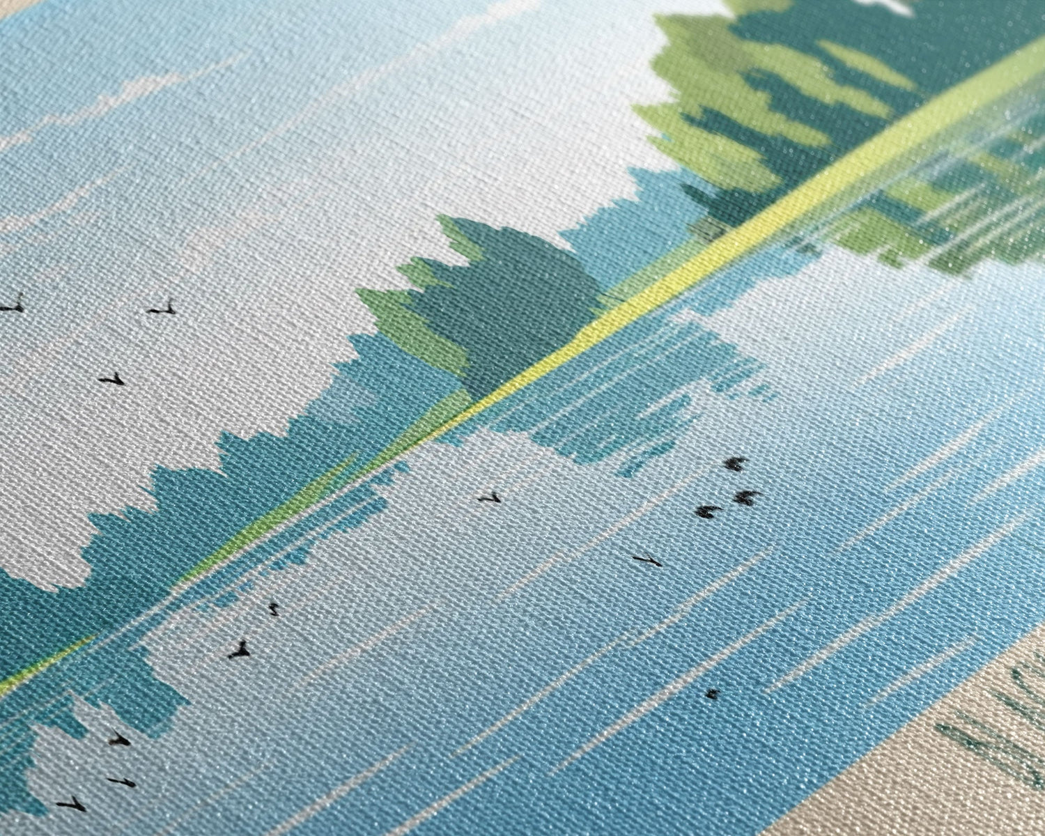 Black Hawk Lake Iowa Framed Canvas Print, Panoramic Travel Poster, Midcentury Modern Wall Art, Pop Art, Nature Bedroom Art, Scenic Lake House Decor