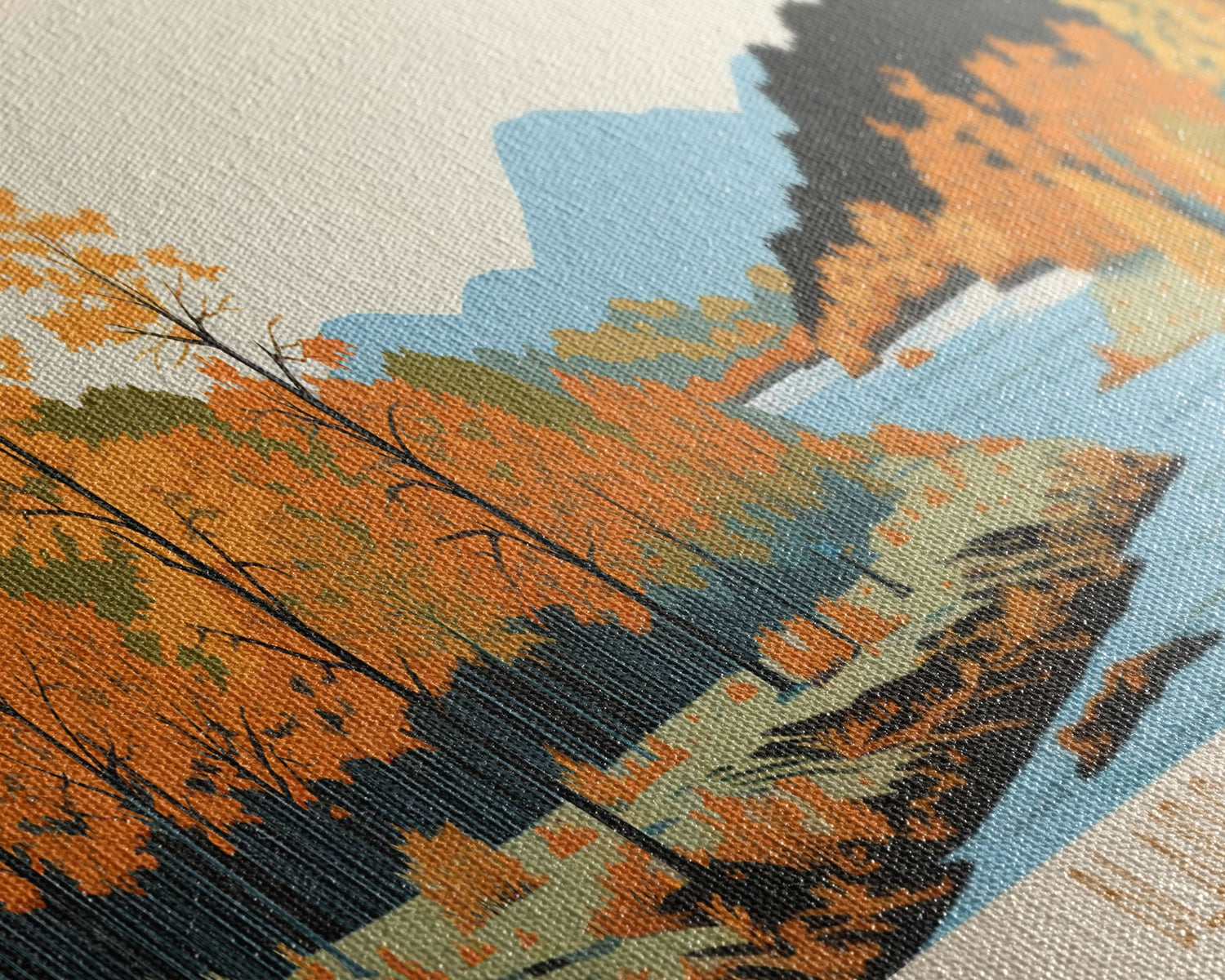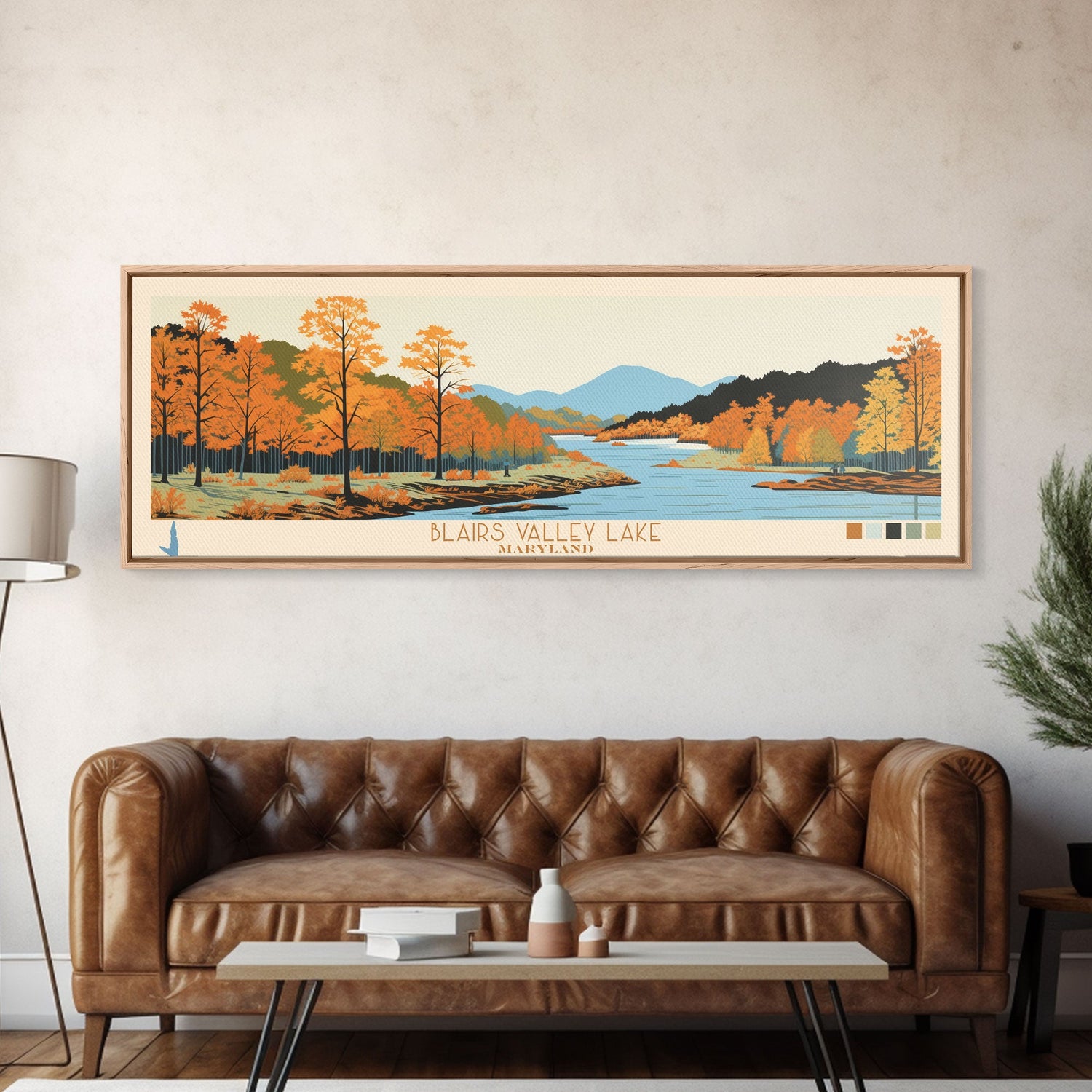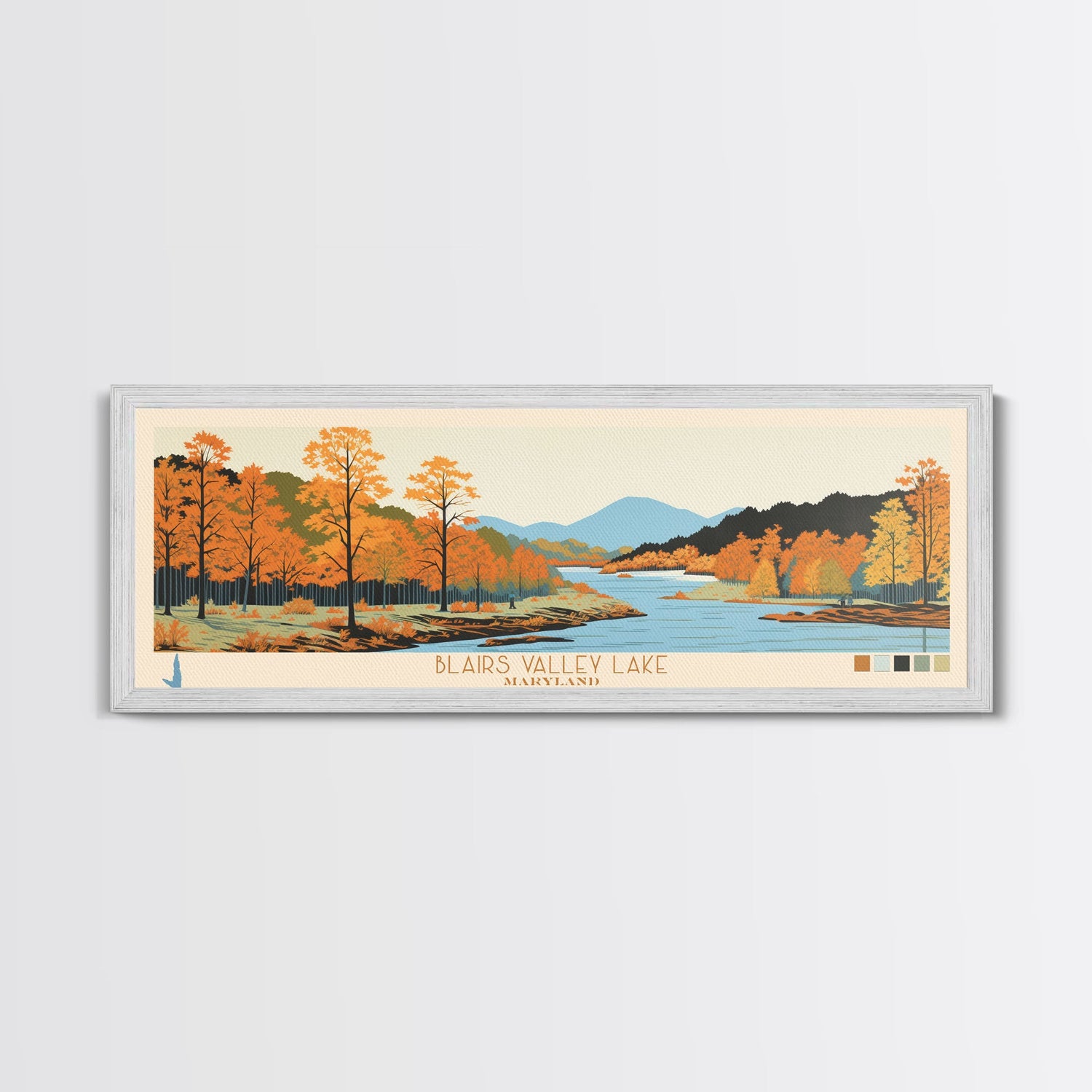 Blairs Valley Lake Maryland Framed Canvas Print, Panoramic Travel Poster, Midcentury Modern Wall Art, Pop Art, Nature Bedroom Art, Scenic Lake House Decor