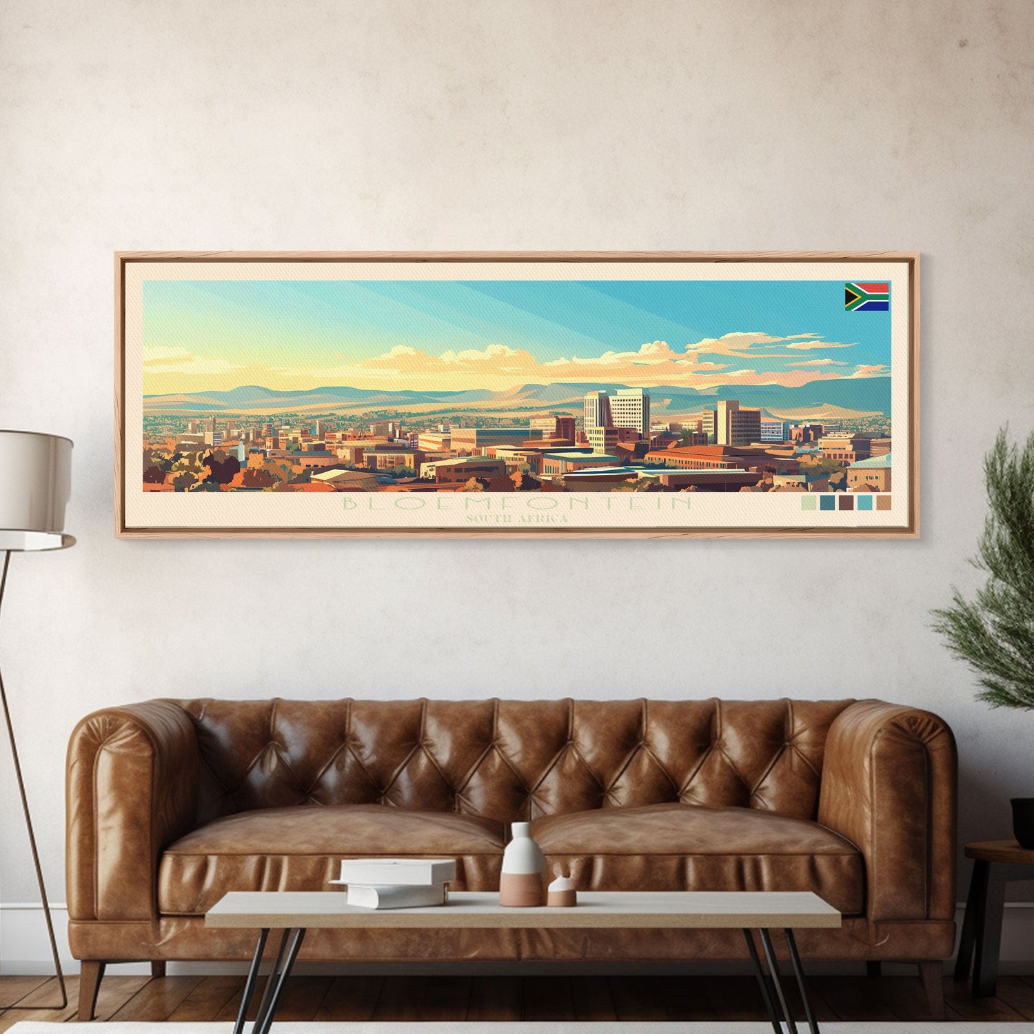 Bloemfontein, South Africa Panoramic Travel Poster Canvas Print, Bloemfontein, South Africa Painting, South Africa Art, Bloemfontein Panoramic Travel Art, Travel Painting