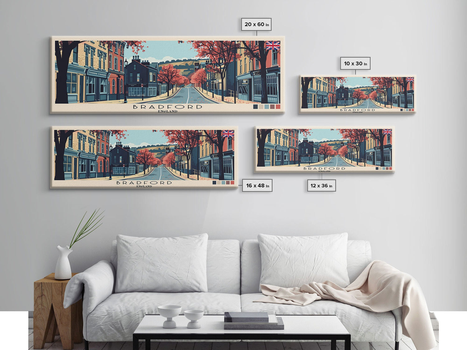 Bradford, England Panoramic Canvas Print, Bradford, England Painting, England Art, Bradford Travel Poster, Travel Art, Vacation Gift