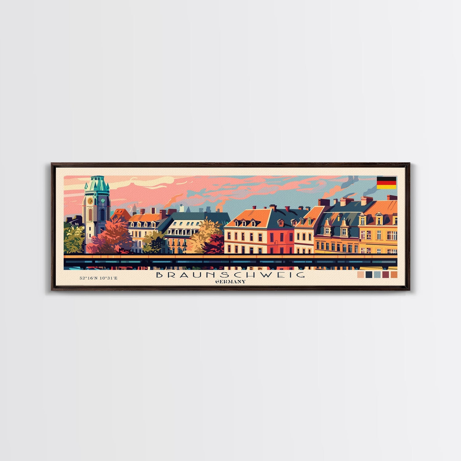 Braunschweig Germany Travel Art, City Art, Framed Canvas Print or Metal Wall Art, Europe Travel Poster, Panoramic Wall Art, Extra Wide Wall Art