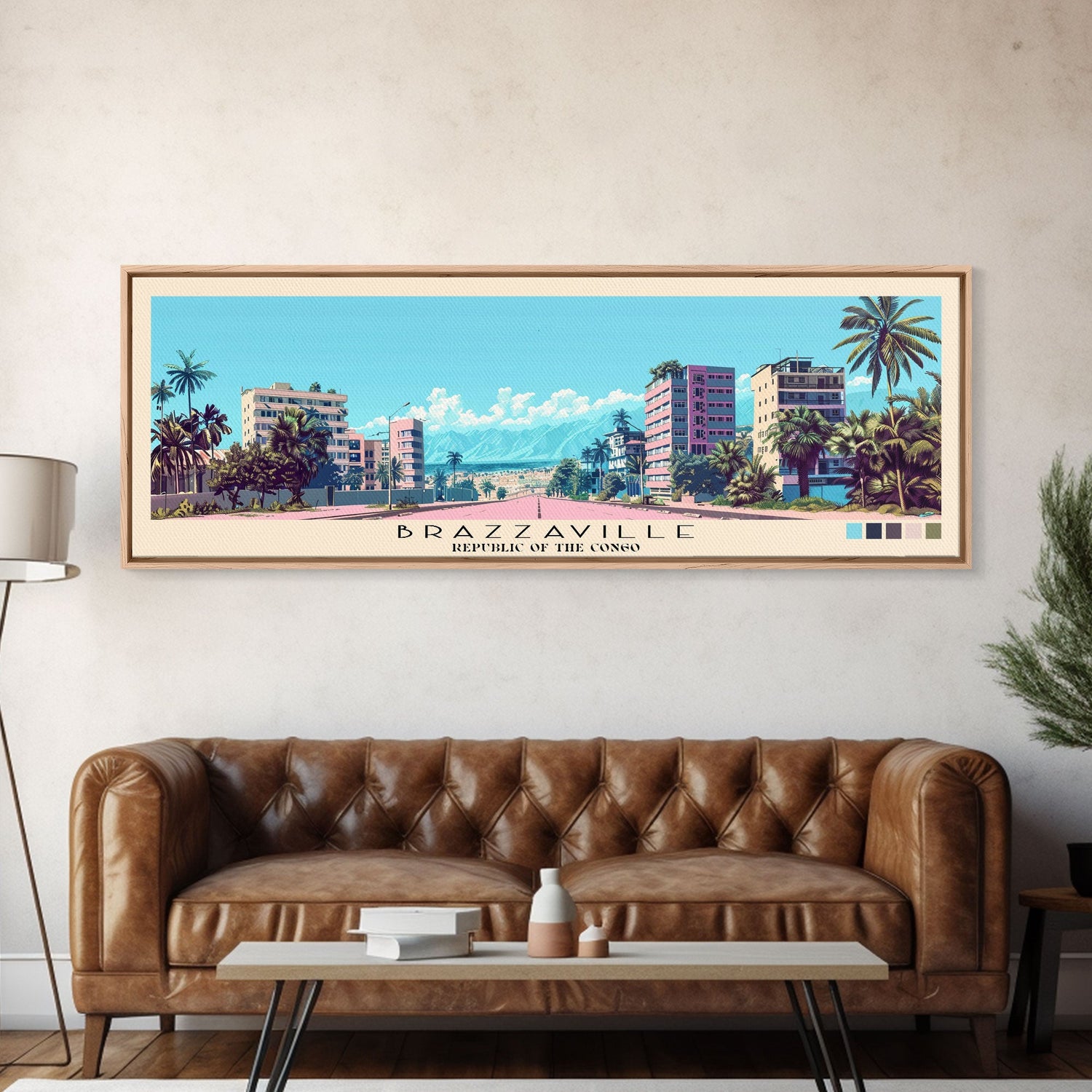 Brazzaville, Republic of the Congo Panoramic Canvas Print, Brazzaville, Republic of the Congo Painting, Republic of the Congo Art, Brazzaville Travel Poster, Travel Art, Guest Room Painting