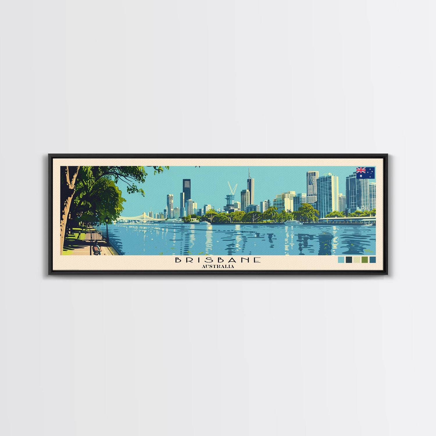 Brisbane, Australia Panoramic Canvas Print, Brisbane, Australia Painting, Australia Art, Brisbane Travel Poster, Travel Art, Living Room Painting