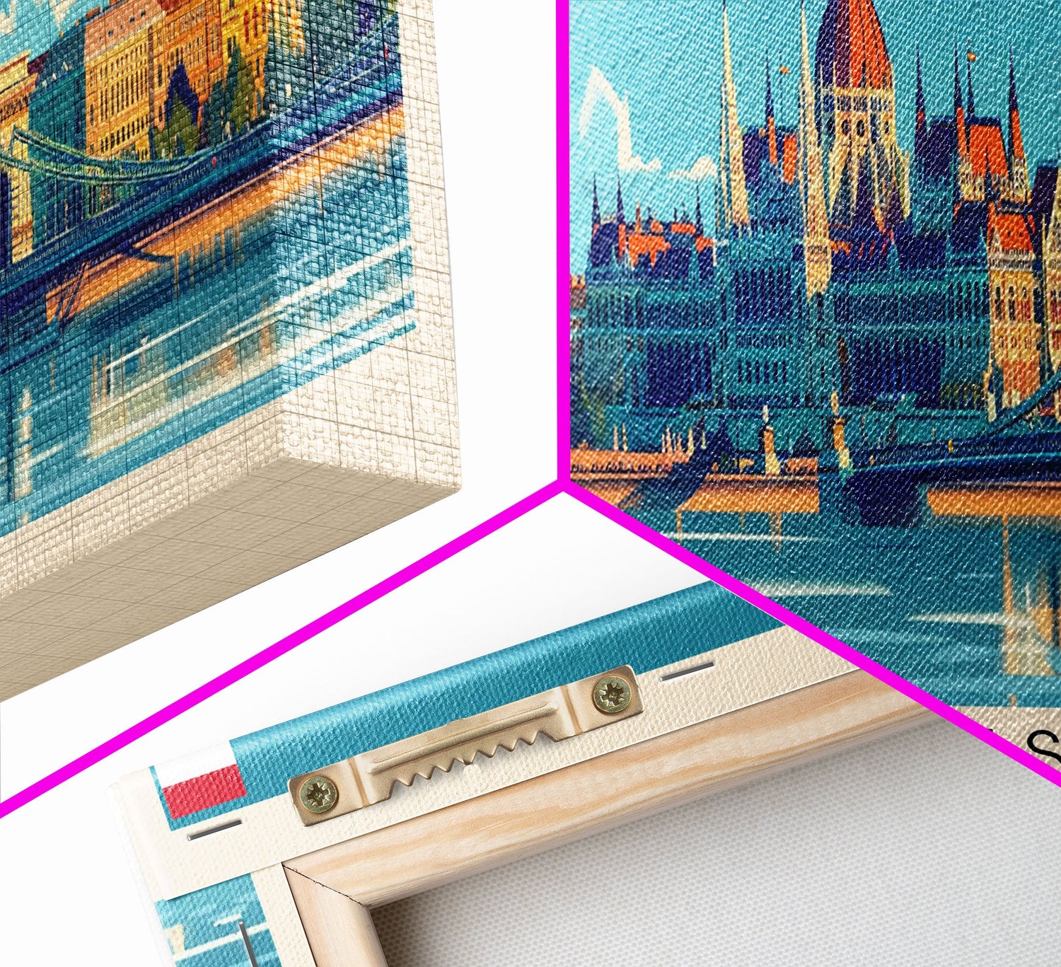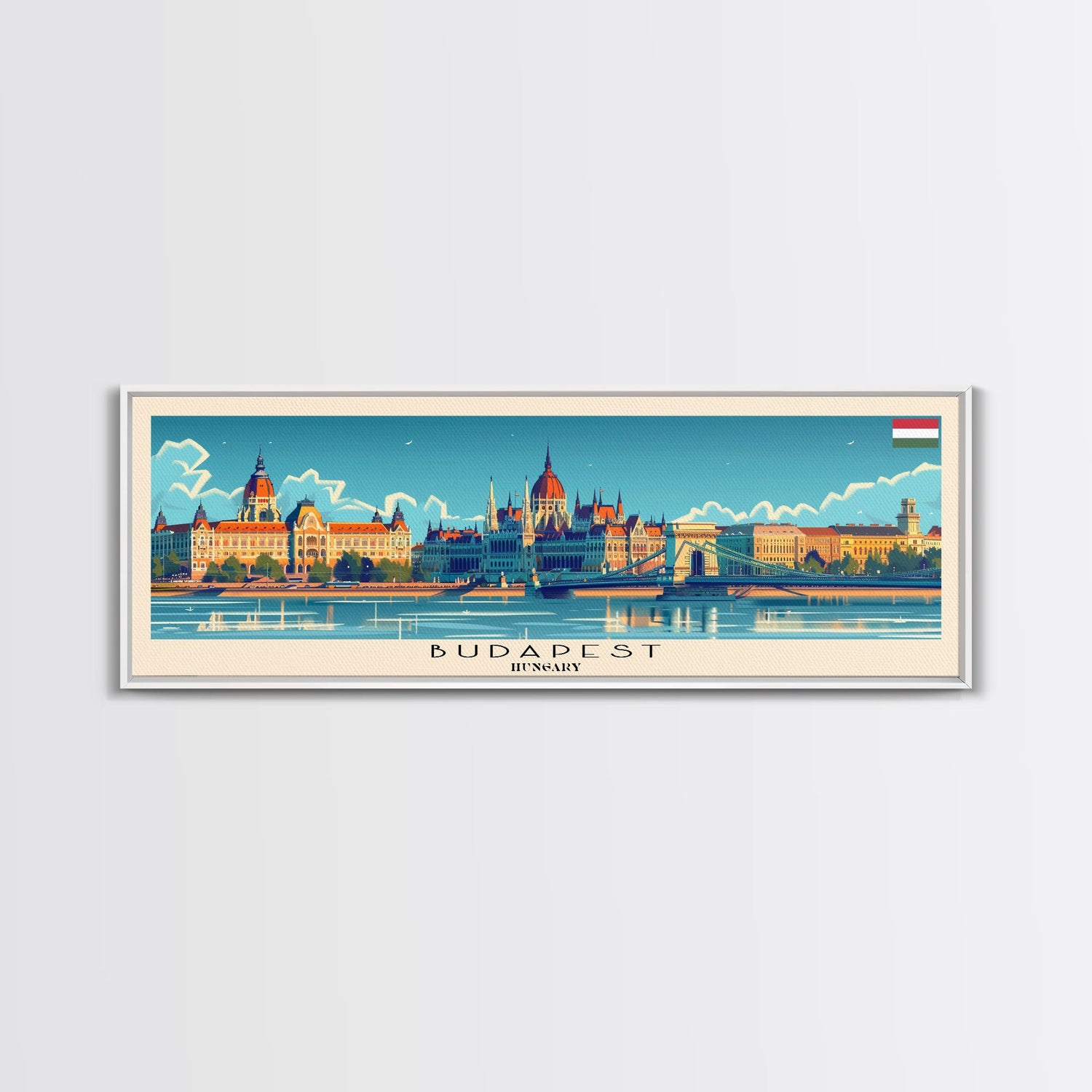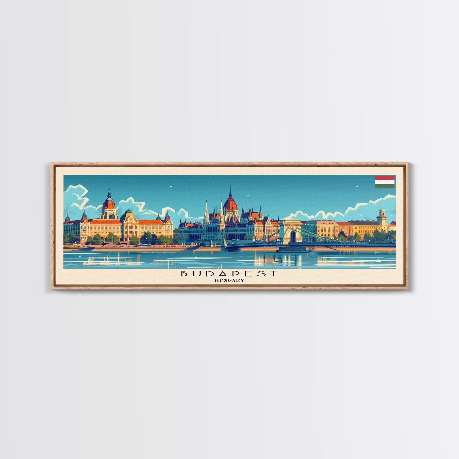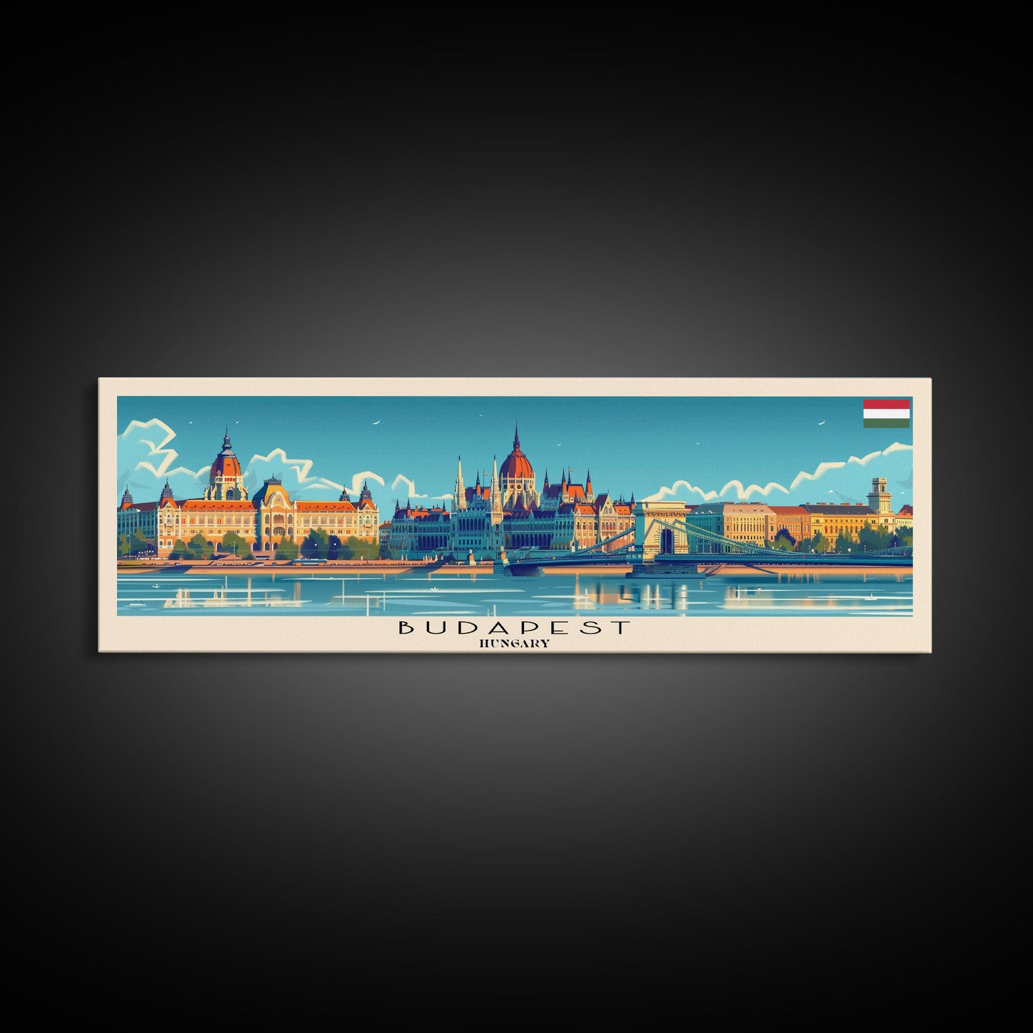 Budapest Hungary Travel Art, City Art, Framed Canvas Print or Metal Wall Art, Europe Travel Poster, Panoramic Wall Art, Extra Wide Wall Art