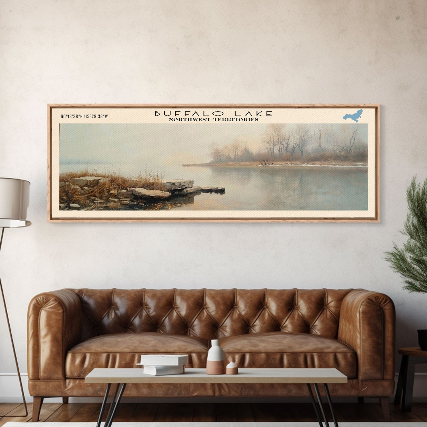 Buffalo Lake Framed Canvas Print, Panoramic Lake House Decor, Wall Art, Travel Poster, Modern Lake Painting, Nature Art