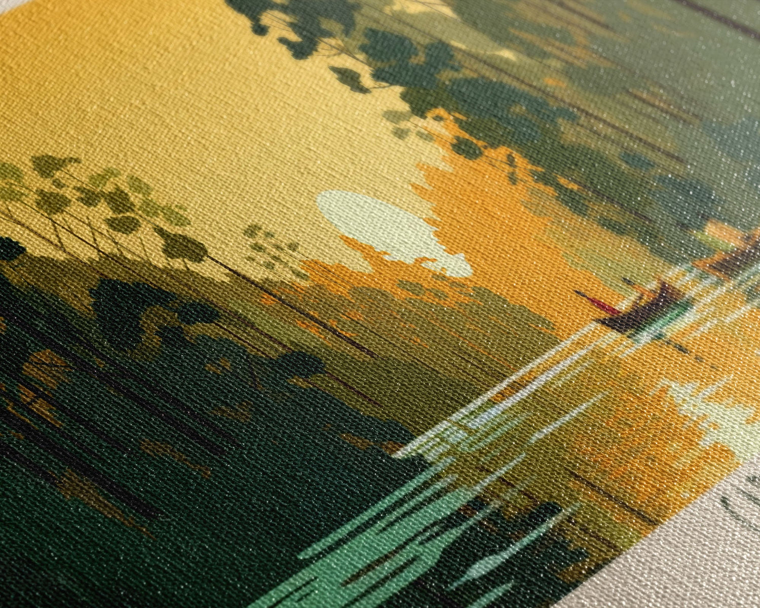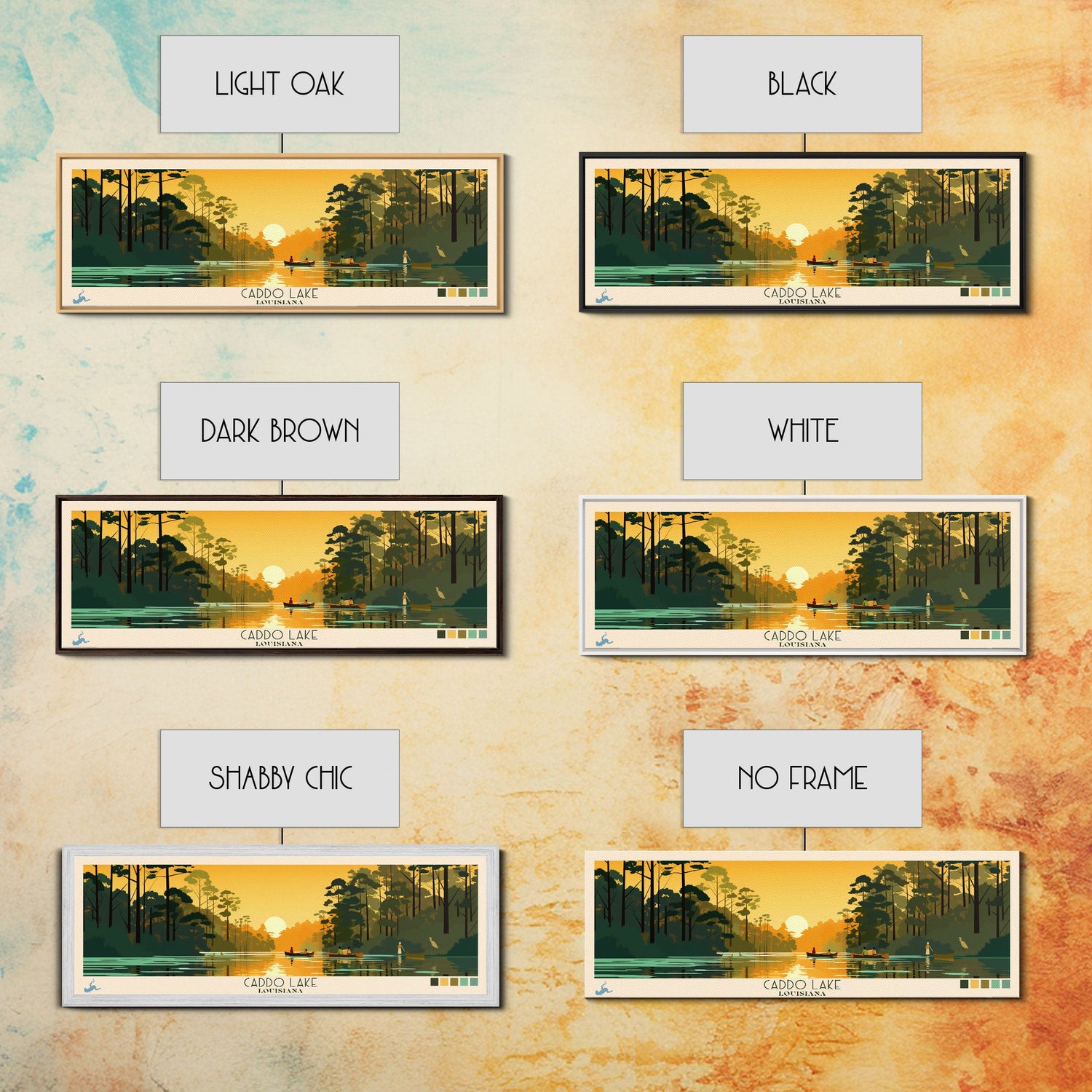 Caddo Lake Louisiana Framed Canvas Print, Pop Art Panoramic Travel Poster, Midcentury Modern, Wall Art, Scenic Nature Painting, Bedroom Decor