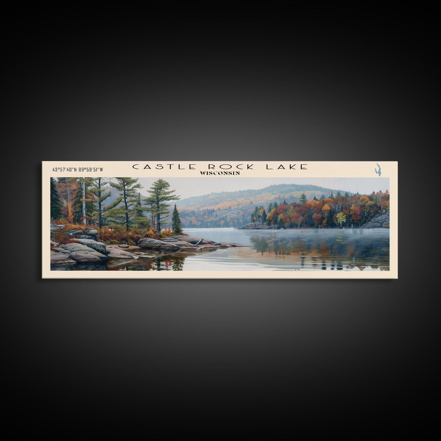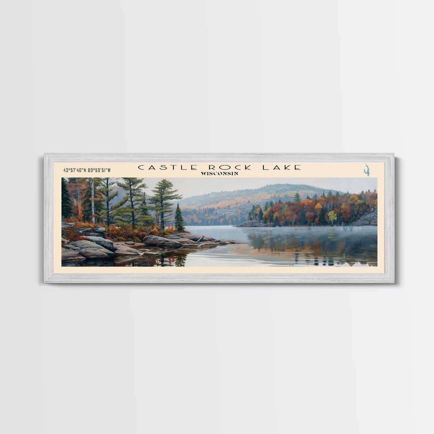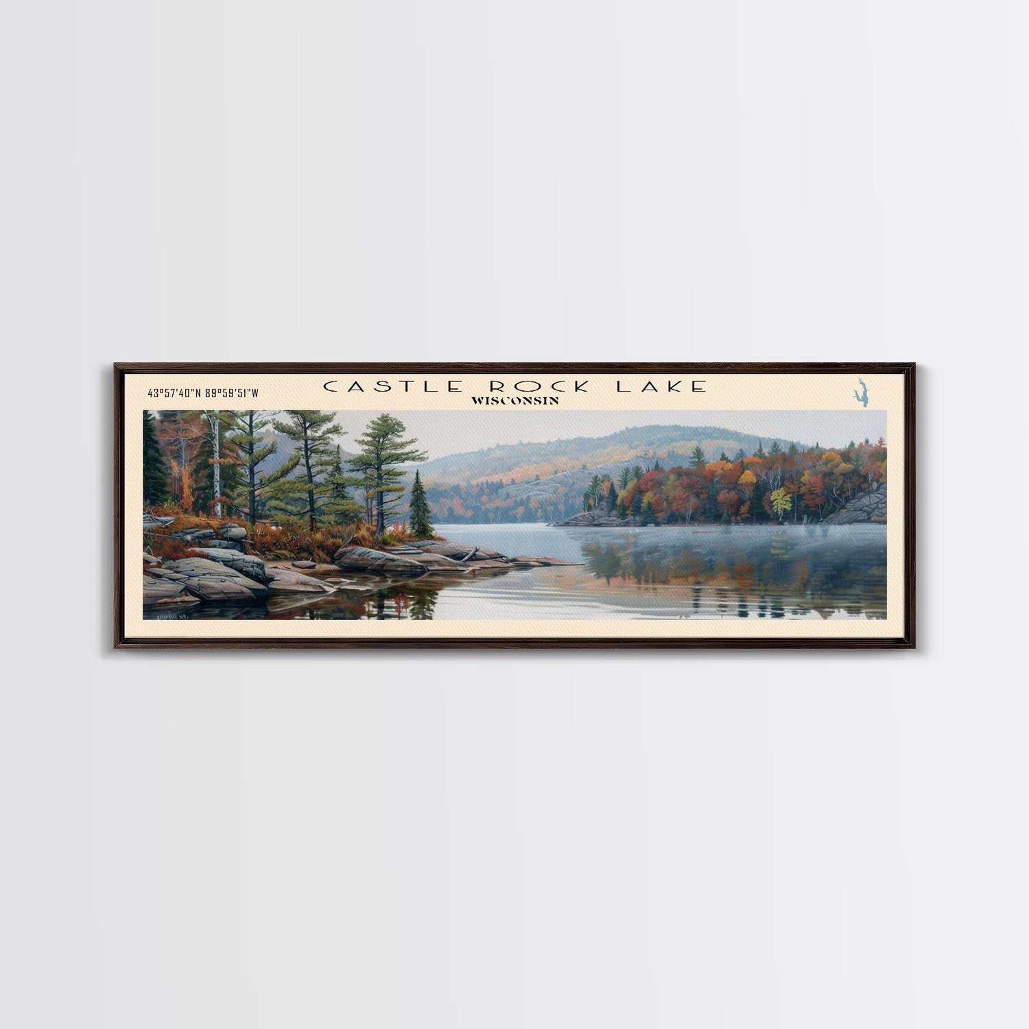 Castle Rock Lake Wisconsin Framed Canvas Print, Lake House Art, Panoramic Wall Art, Travel Poster, Modern Lake Painting, Home Decor