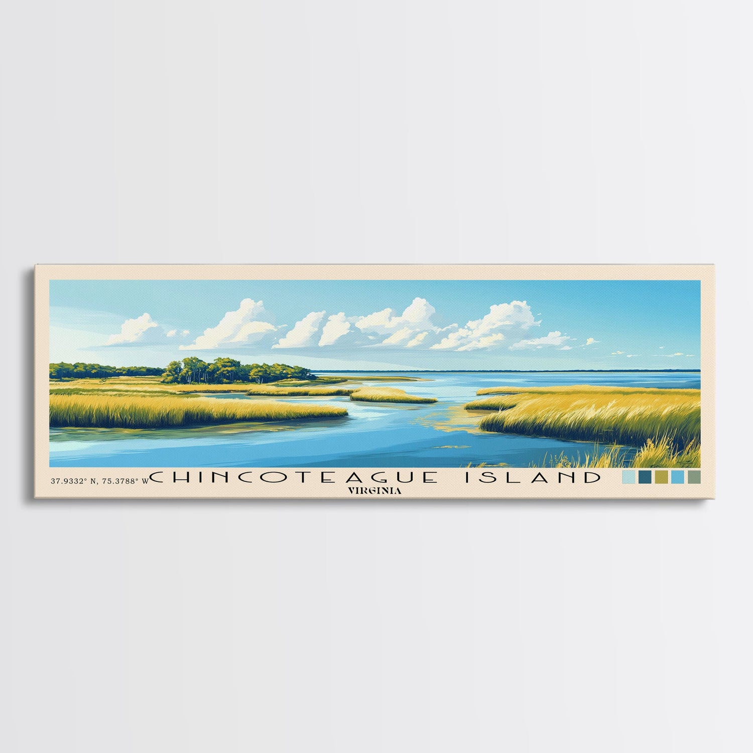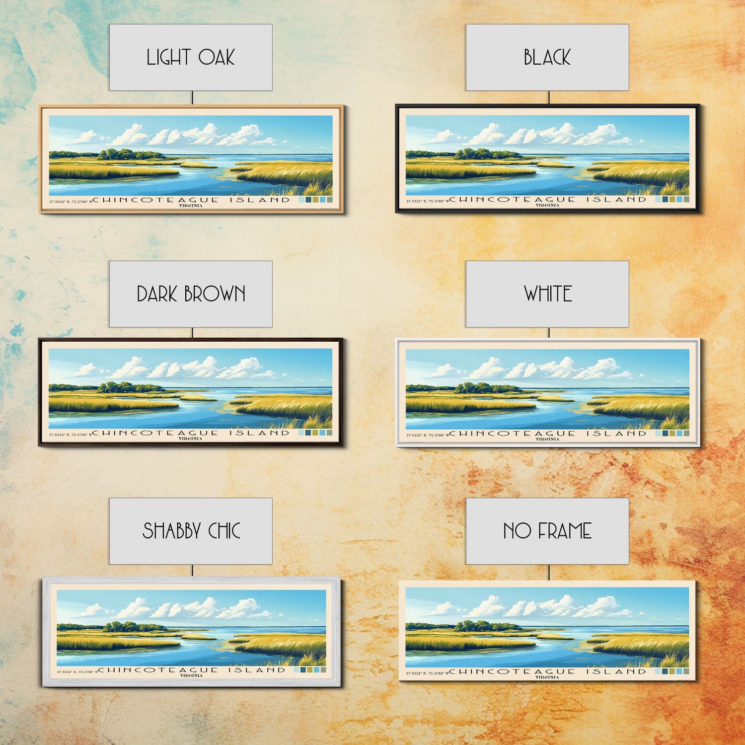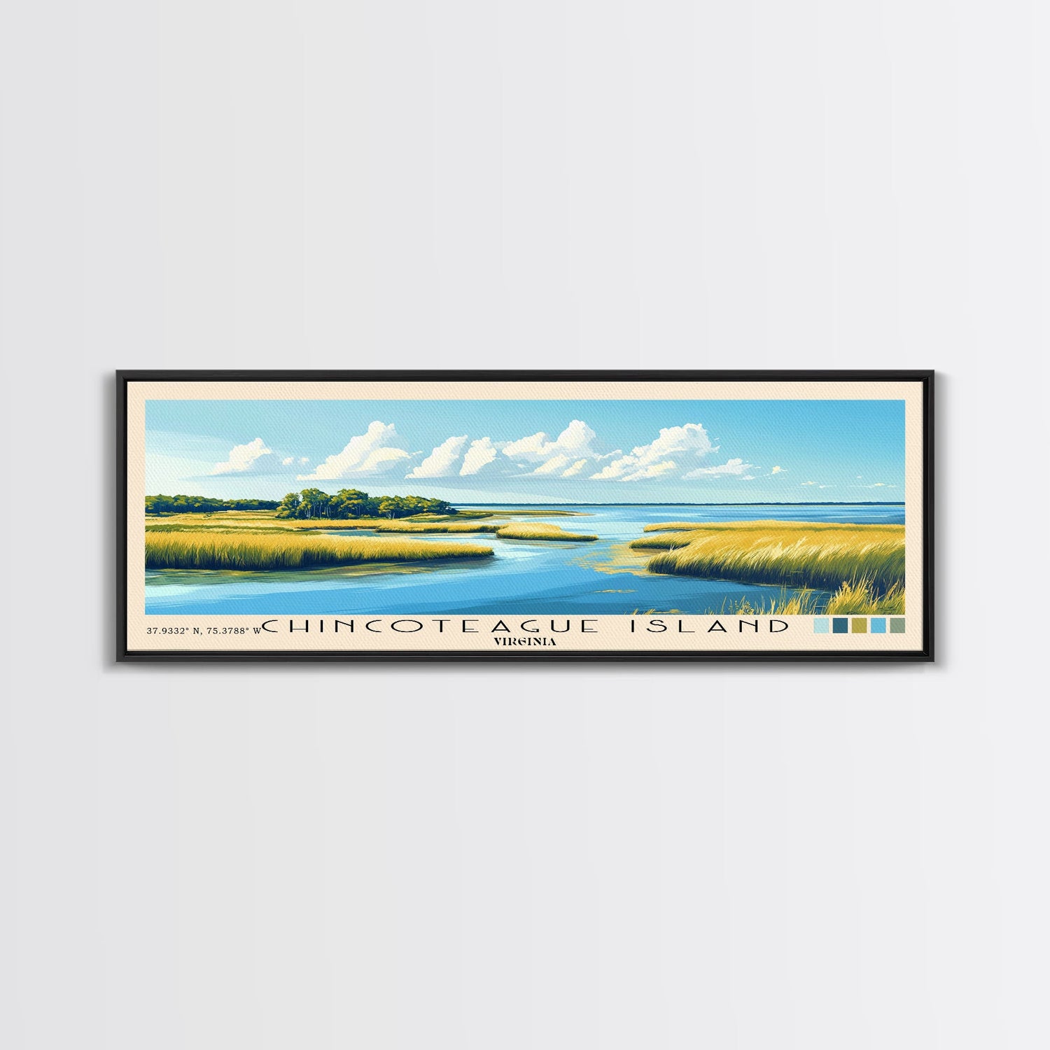Chincoteague Island, Virginia Panoramic Beach Print, Vacation Gift, Virginia Wall Art, Framed Canvas Print, Framed Beach Painting