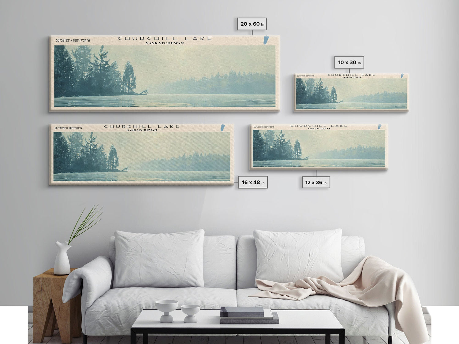 Churchill Lake Framed Canvas Print, Panoramic Lake House Decor, Wide Wall Art, Travel Poster, Modern Lake Painting, Nature Art