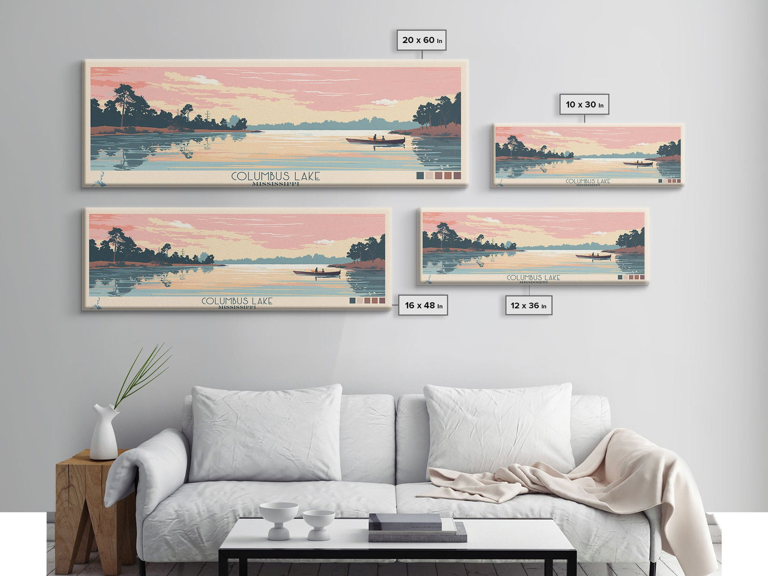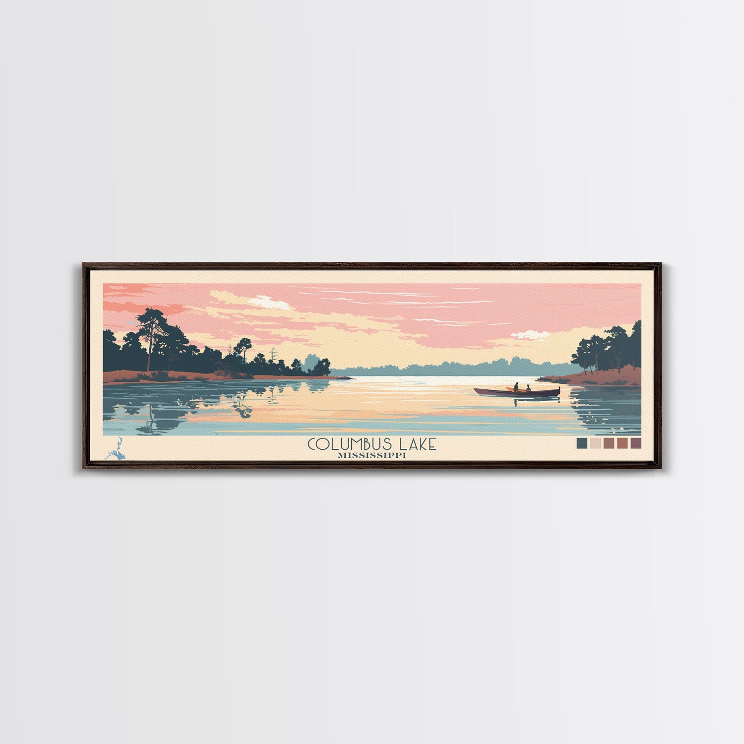 Columbus Lake Mississippi Framed Canvas Print, Midcentury Modern Panoramic Wall Art, Living Room Decor, Pop Art, Travel Poster Art, Scenic Nature Painting