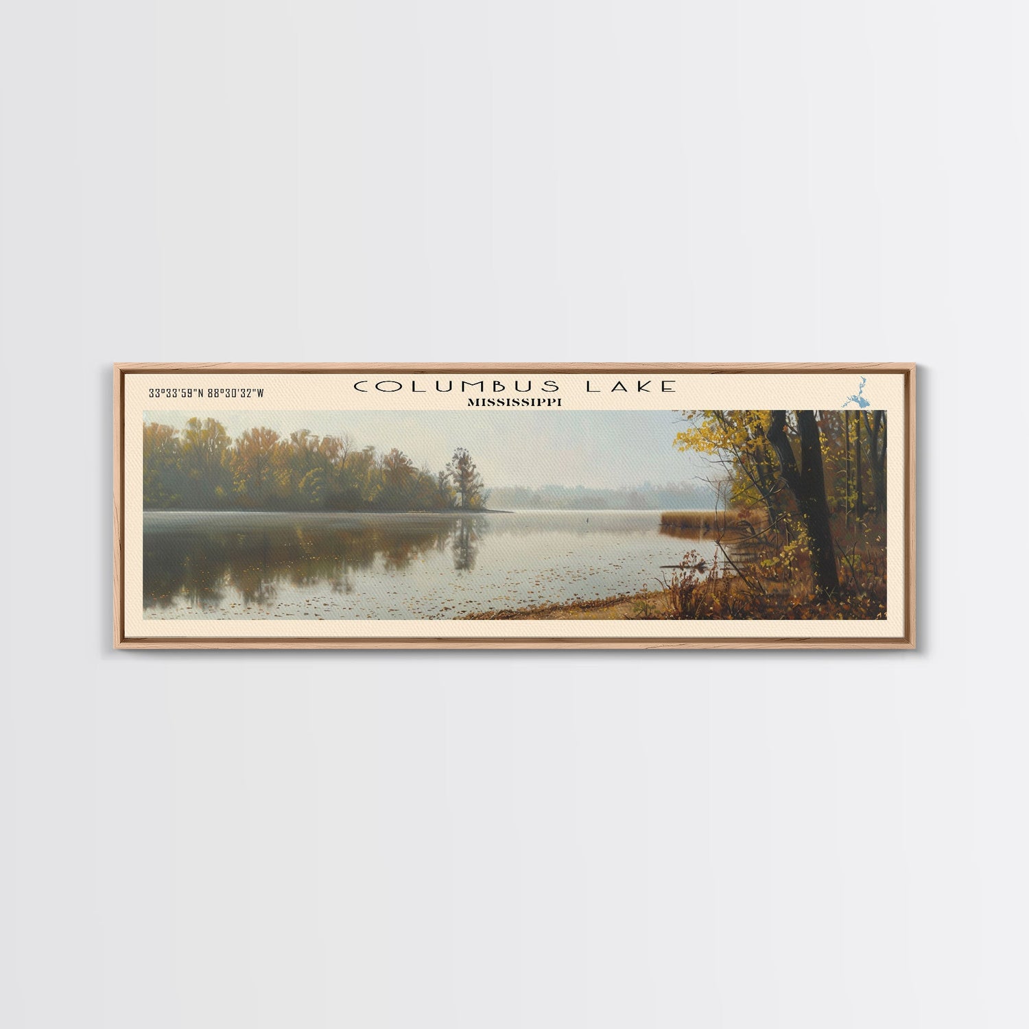 Columbus Lake Mississippi Framed Canvas Print, Panoramic Lake House Decor, Wide Wall Art, Travel Poster, Rustic Lake Painting, Nature Art