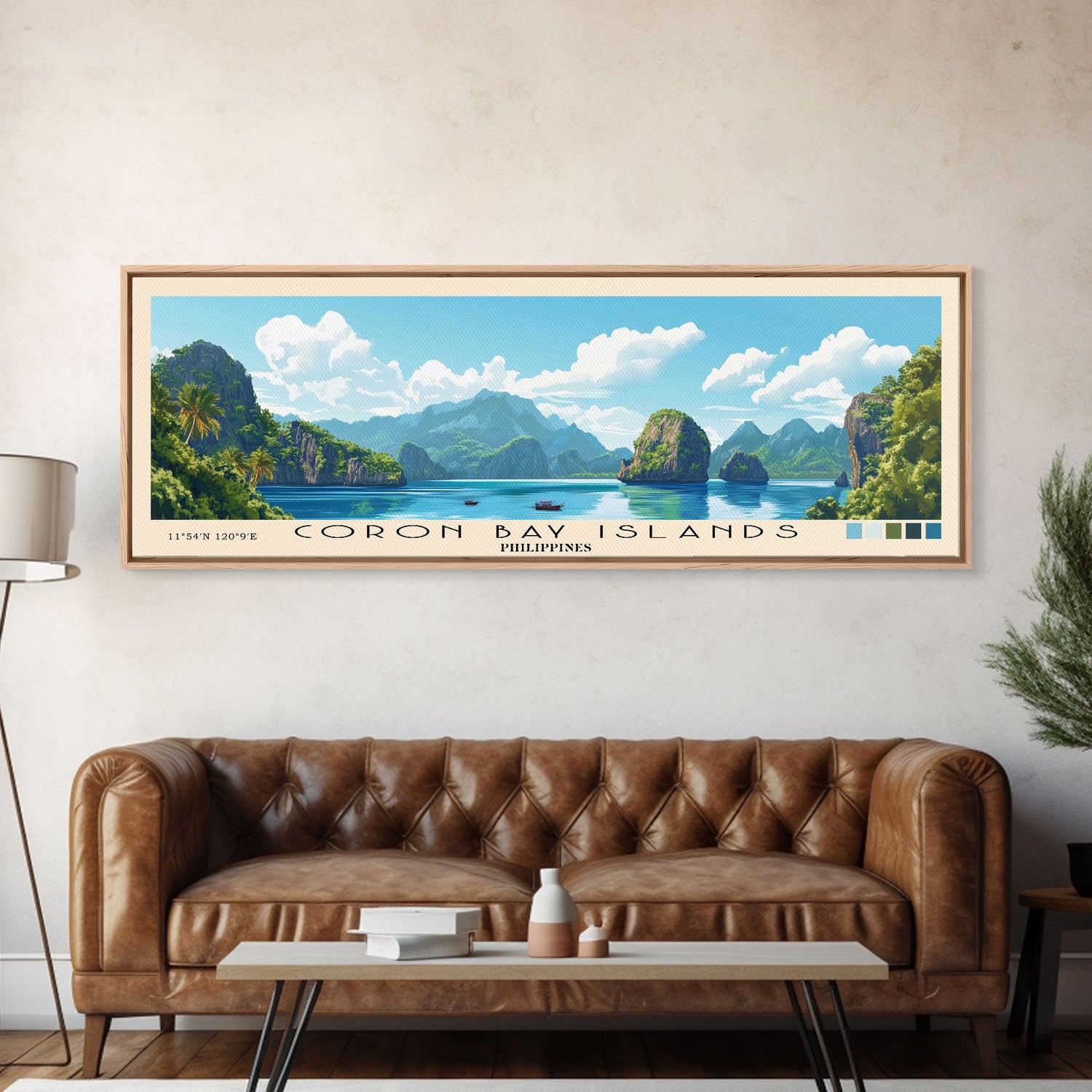 Coron Bay Islands, Philippines Panoramic Beach Print, Vacation Gift, Philippines Wall Art, Framed Canvas Print, Framed Beach Painting