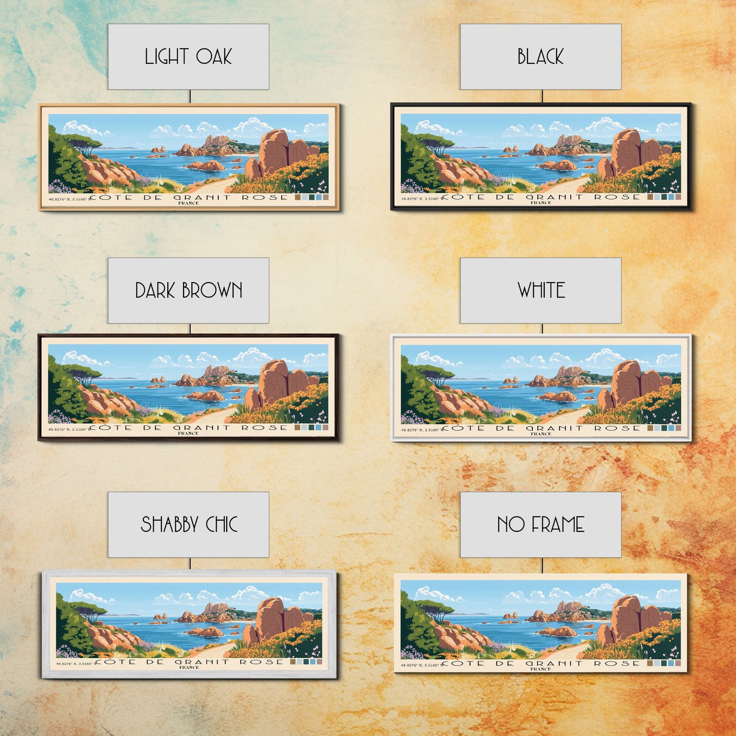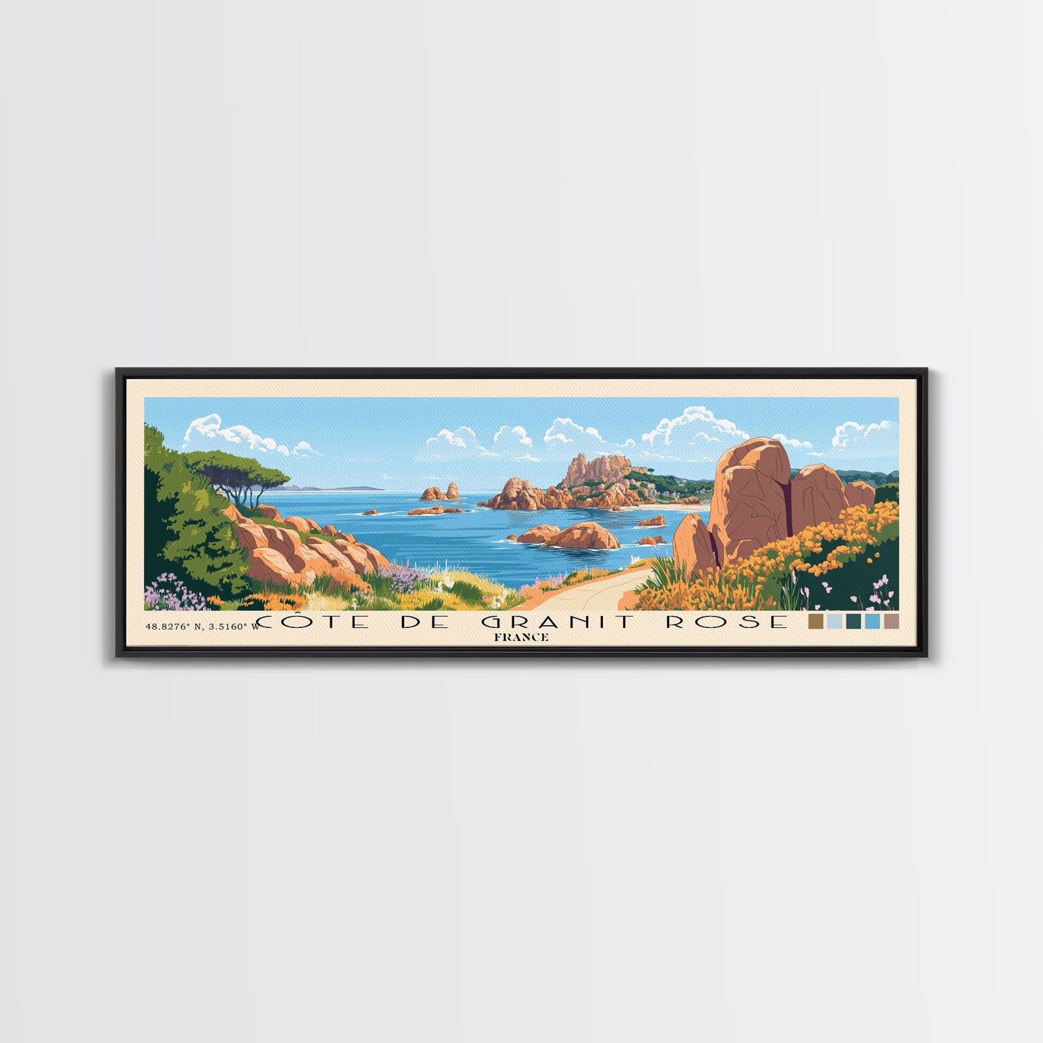 Côte de Granit Rose, France Panoramic Beach Print, Vacation Gift, France Wall Art, Beach Painting, Beach Decor, Beach Painting