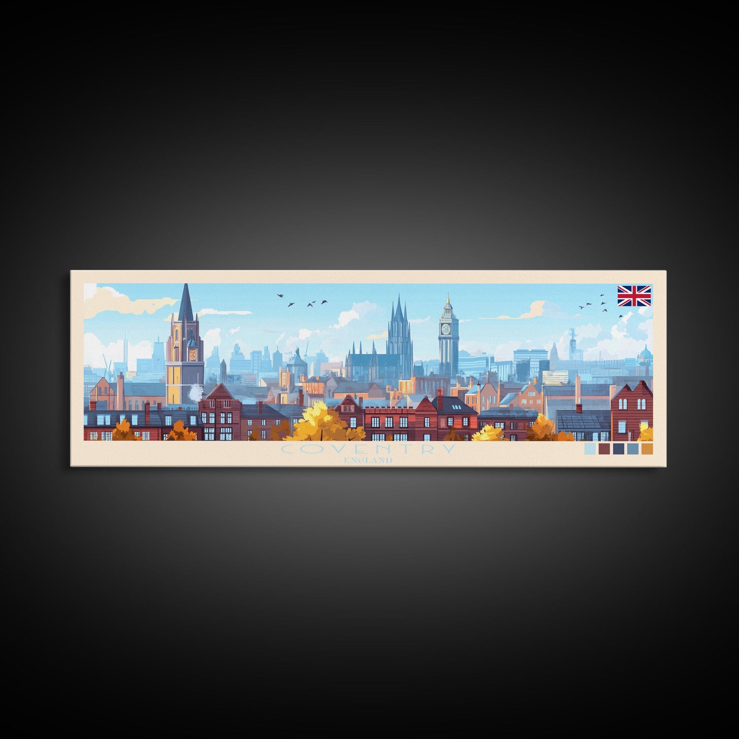 Coventry, England Travel Poster Panoramic Canvas Print, Coventry, England Painting, England Art, Coventry Travel Art, Guest Room Painting