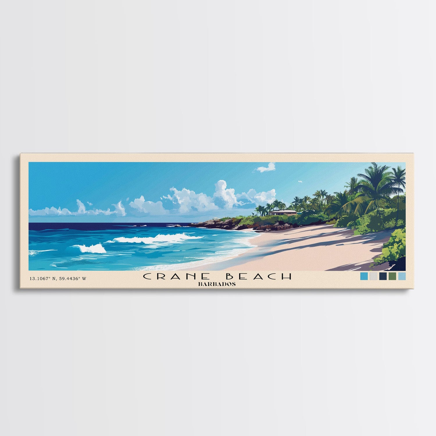 Crane Beach, Barbados Panoramic Print, Vacation Gift, Barbados Wall Art, Beach Painting, Beach Decor, Large Wall Art, Wood Frame Art