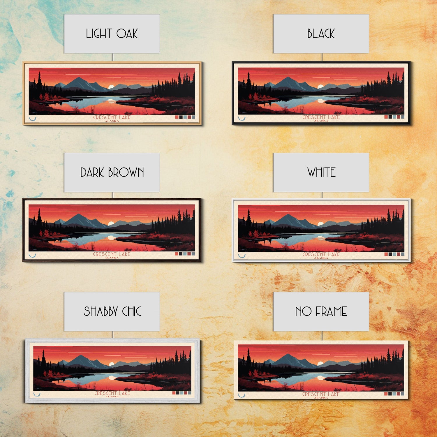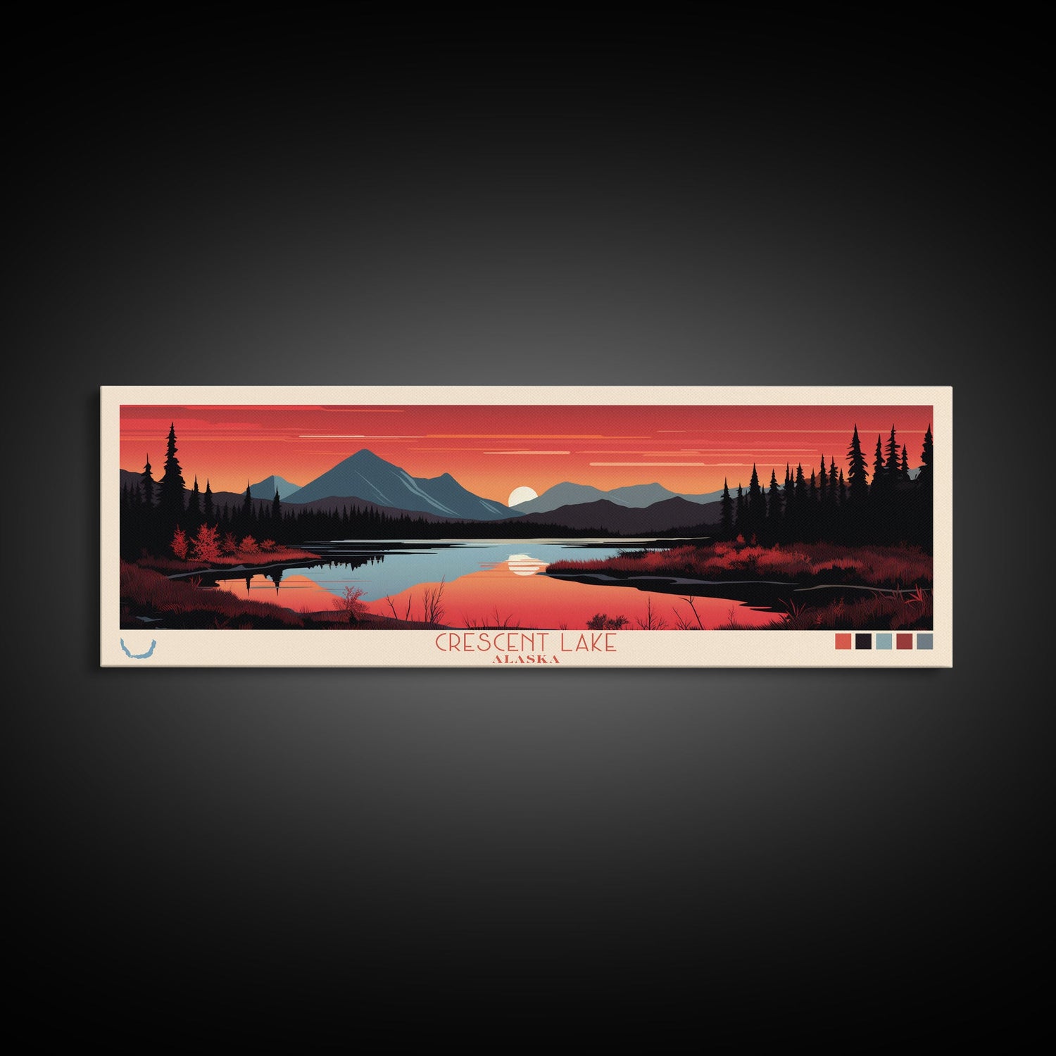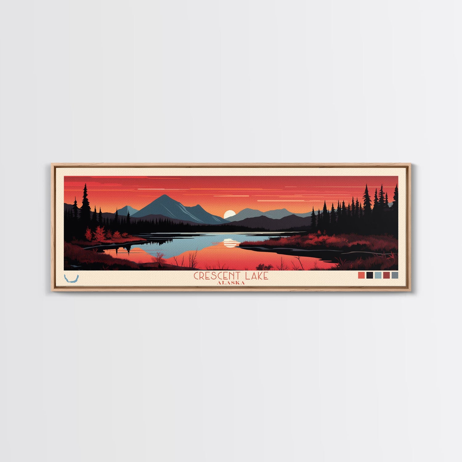Crescent Lake Alaska Framed Canvas Print, Pop Art Panoramic Travel Poster, Midcentury Modern, Wall Art, Scenic Nature Painting, Bedroom Decor, Living Room Art