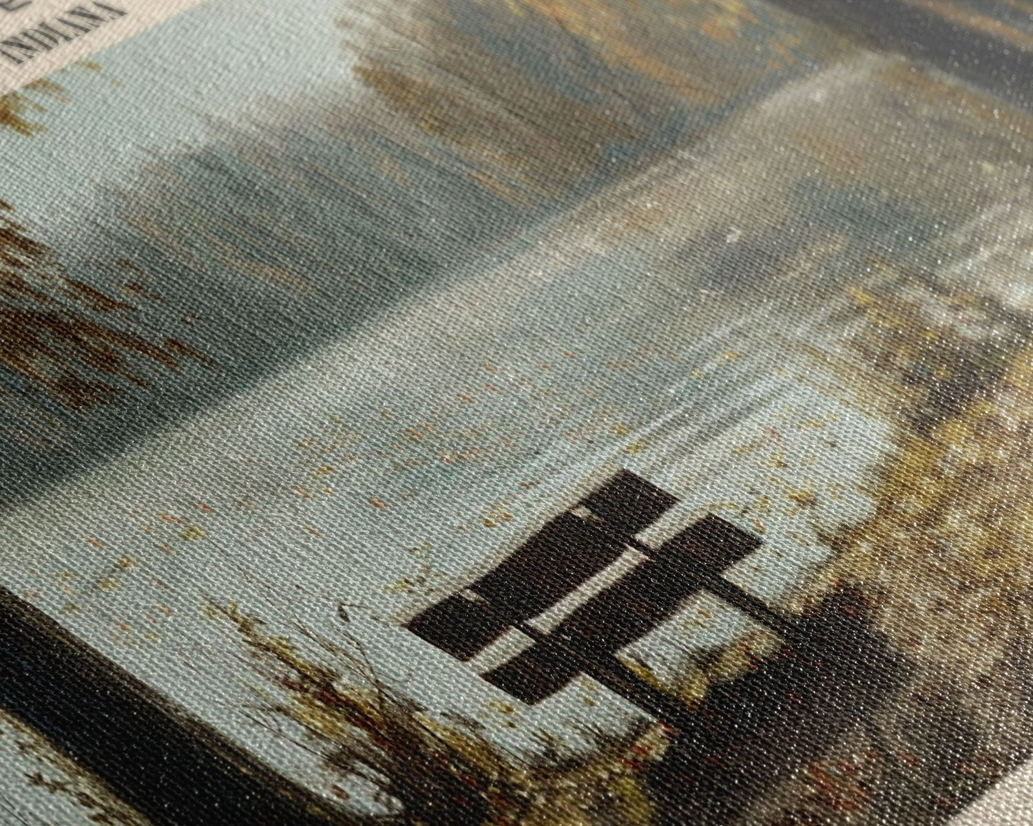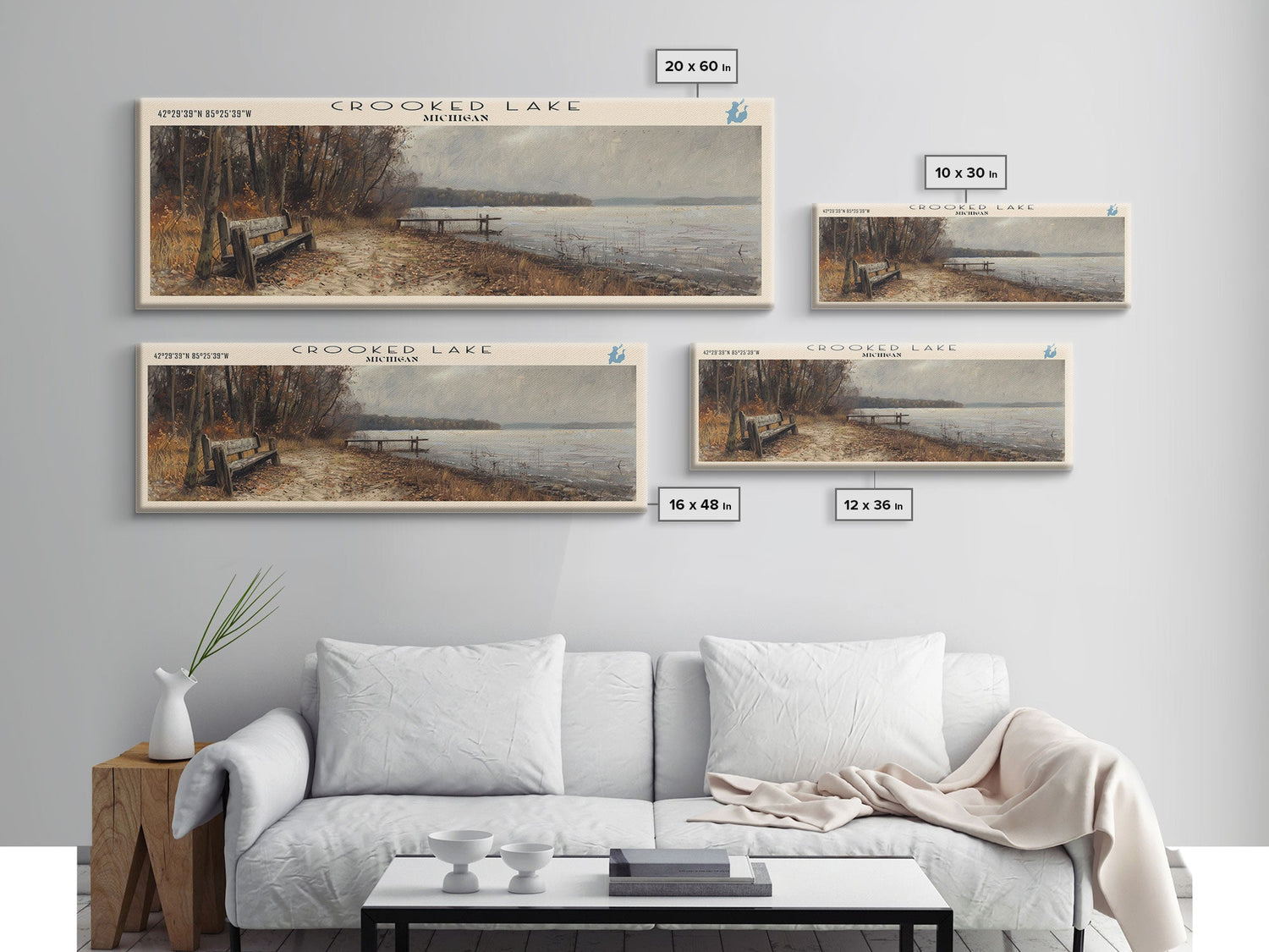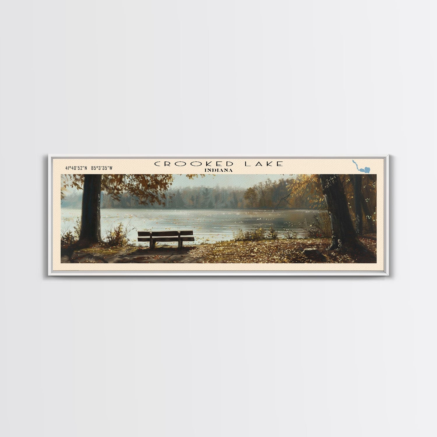 Crooked Lake Indiana Framed Canvas Print, Panoramic Lake House Decor, Wall Art, Travel Poster, Rustic Lake Painting, Nature Art