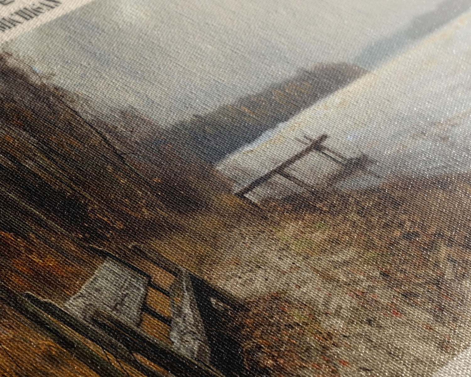 Most of our canvases are made in the USA, with the exception of canvases ordered with the light oak unstained frames, and any large canvases (24x48, 30x60, 16x48 and 20x60) ordered WITH a frame. These are temporarily made in and shipped from Europe, while we try to find a more consistent supplier in the USA.