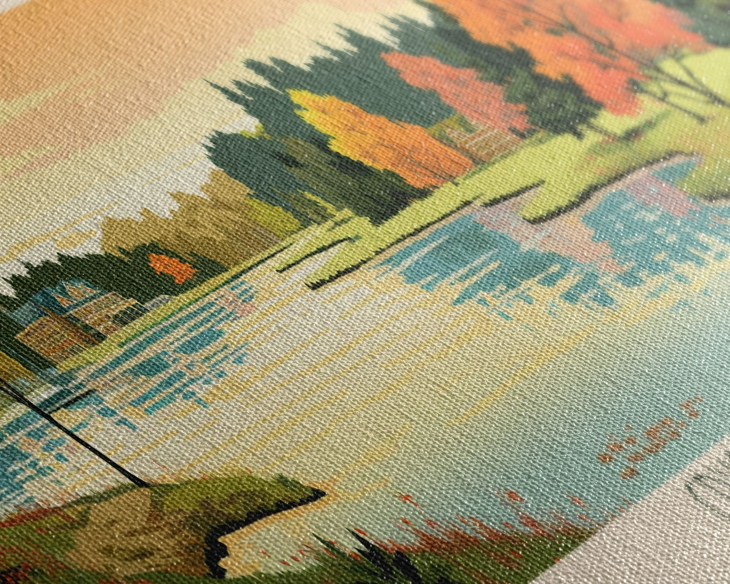 Crystal Lake Connecticut Framed Canvas Print, Pop Art Panoramic Travel Poster, Midcentury Modern, Wall Art, Scenic Nature Painting, Bedroom Decor, Living Room Art