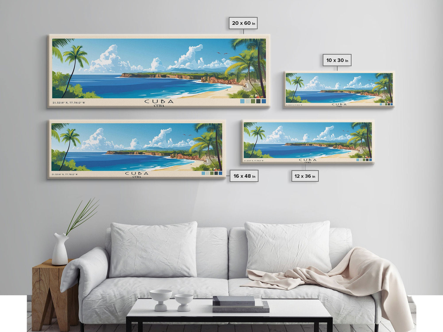 Cuba, Cuba Panoramic Beach Print, Vacation Gift, Cuba Wall Art, Beach Painting, Beach Decor, Beach Painting