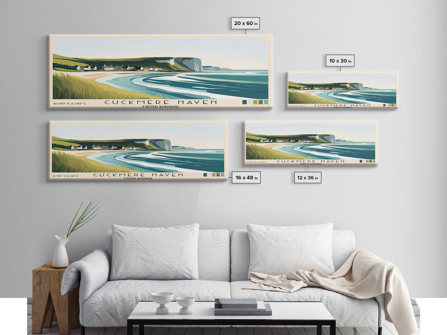 Cuckmere Haven, United Kingdom Panoramic Beach Print, Vacation Gift, United Kingdom Wall Art, Framed Canvas Print, Framed Beach Painting