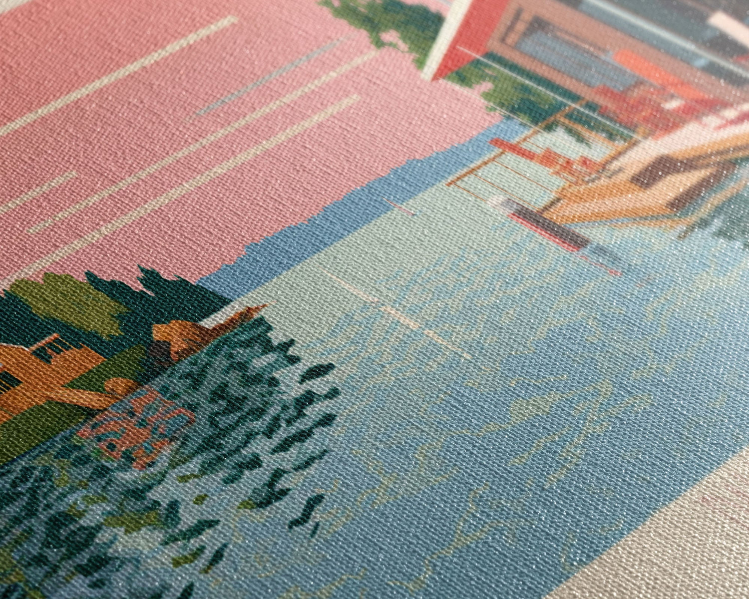 Dallas Lake Indiana Framed Canvas Print, Midcentury Modern Panoramic Wall Art, Bedroom Decor, Pop Art, Travel Poster Art, Scenic Nature Painting