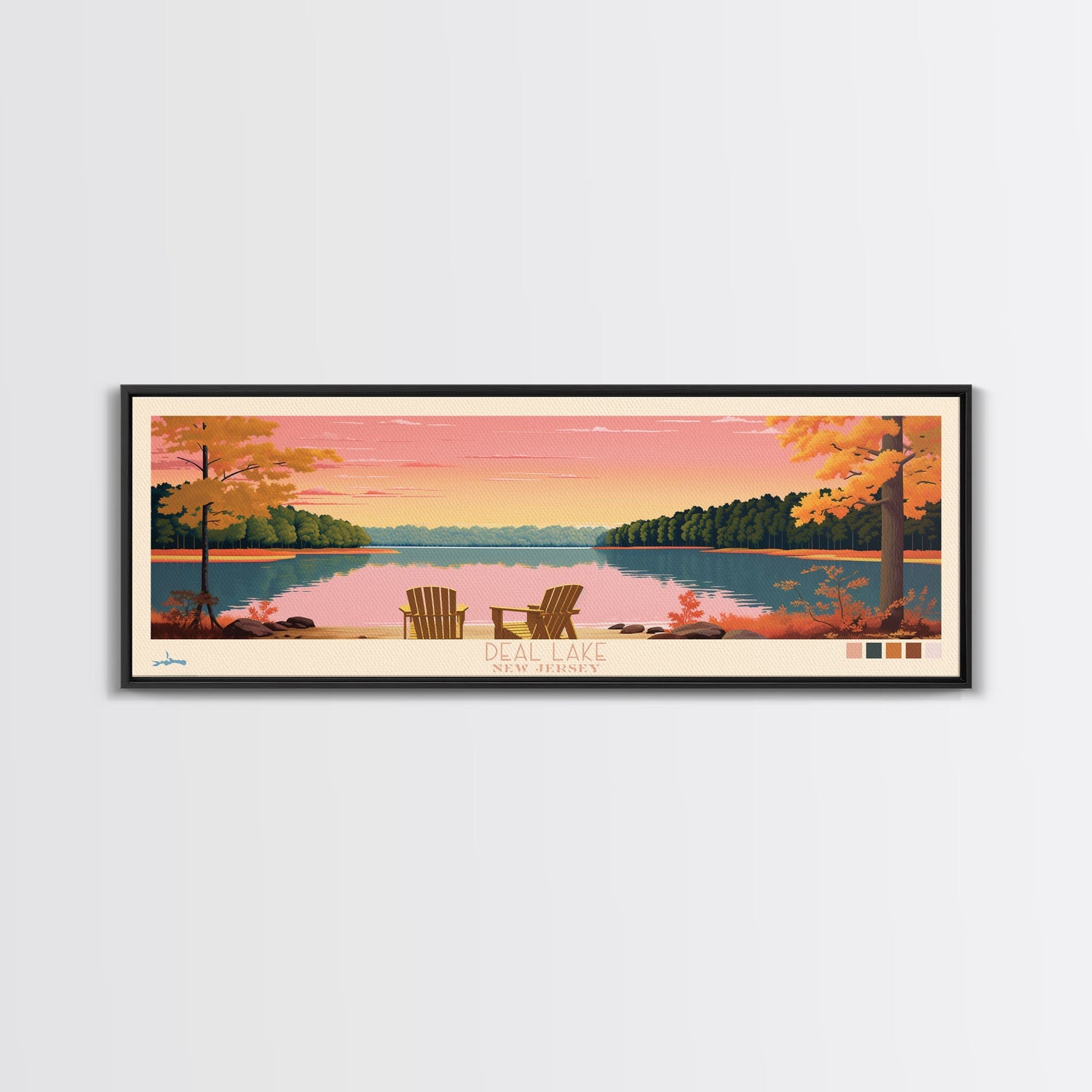 Deal Lake New Jersey Framed Canvas Print, Midcentury Modern Panoramic Wall Art, Living Room Decor, Pop Art, Travel Poster Art, Scenic Nature Painting