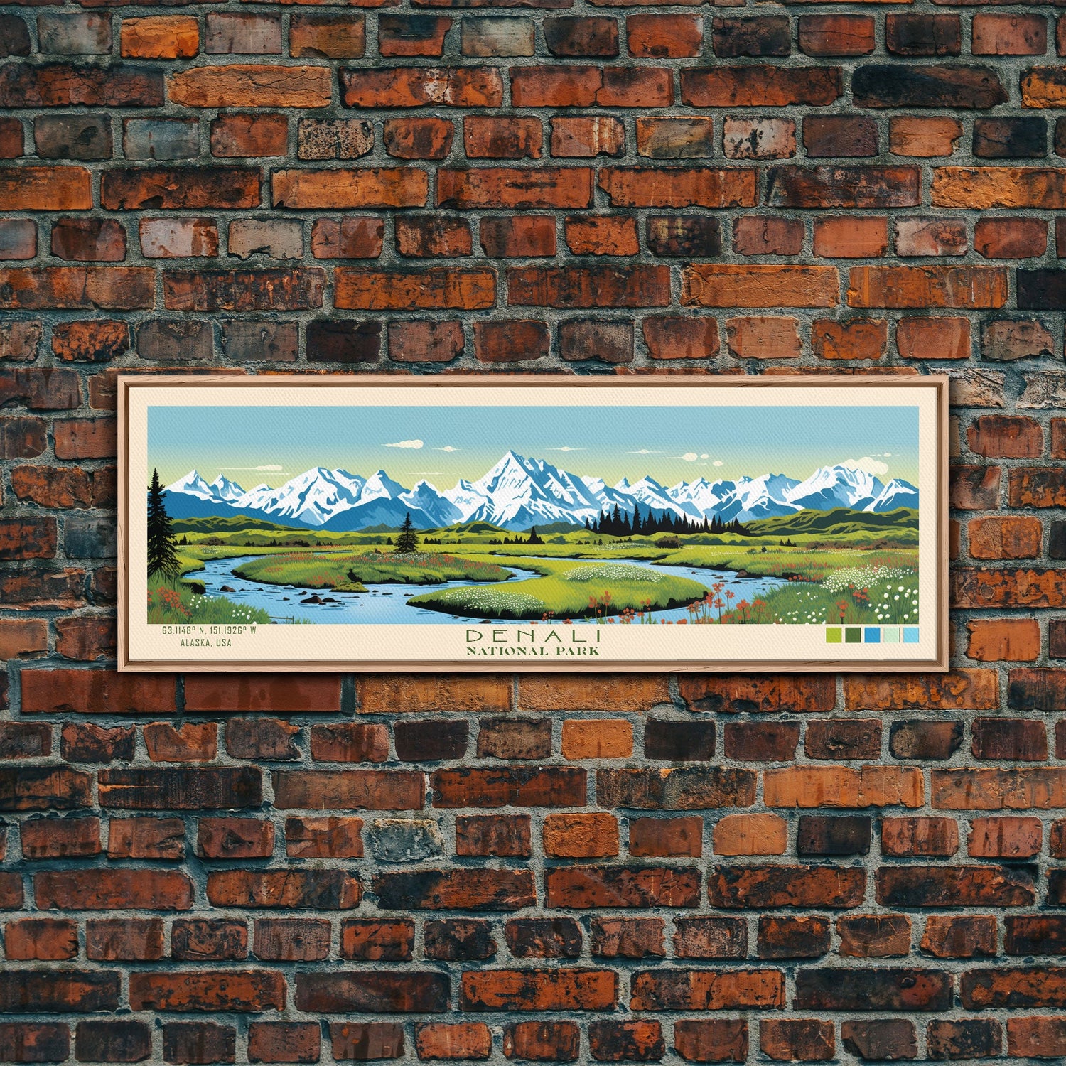 Denali National Park, Panoramic Alaska Travel Art, National Park Print, Minimalist Travel Art, Midcentury Modern Style Landscape