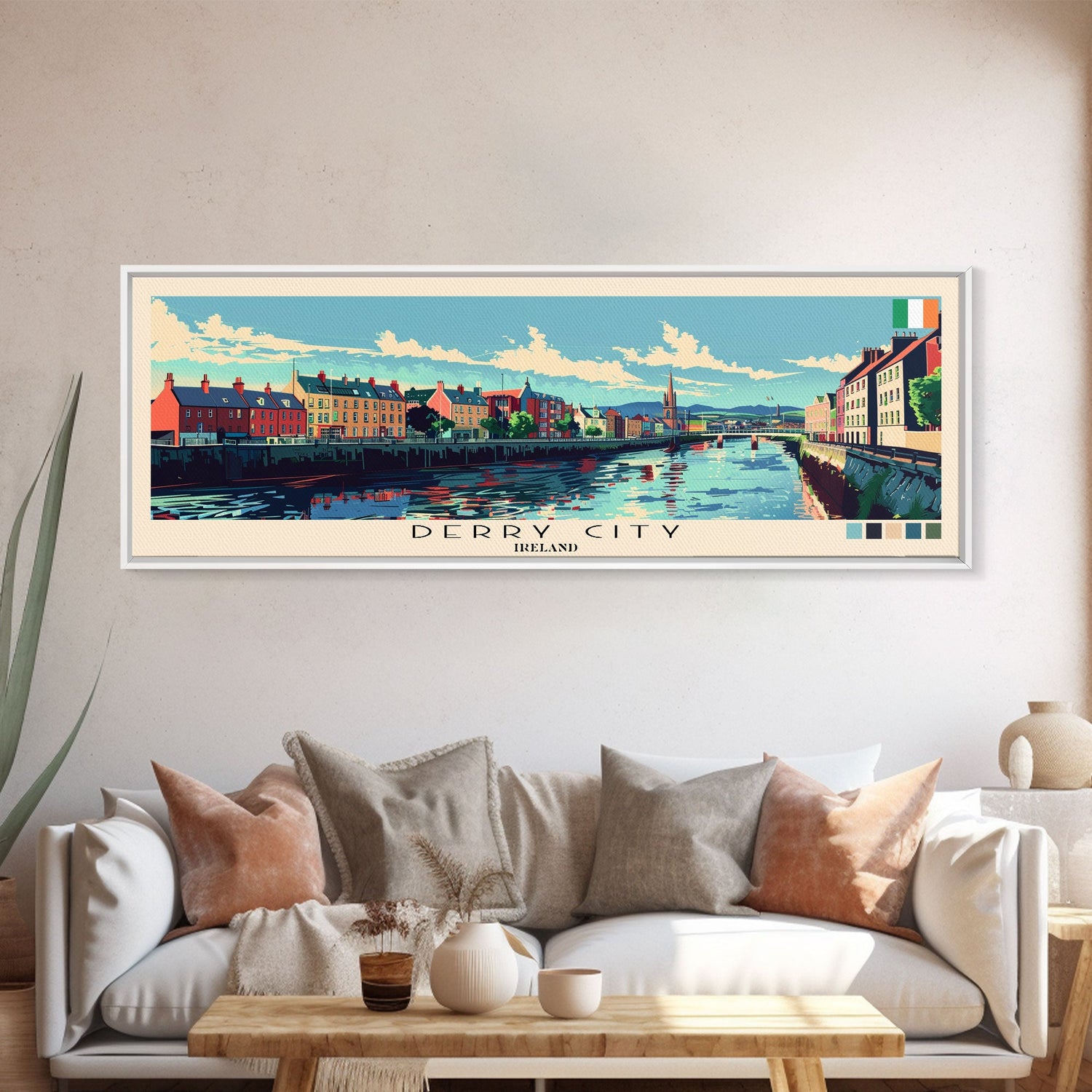 Derry City, Ireland Panoramic Canvas Print, Derry City, Ireland Painting, Ireland Art, Derry City Travel Poster, Travel Art, Living Room Painting