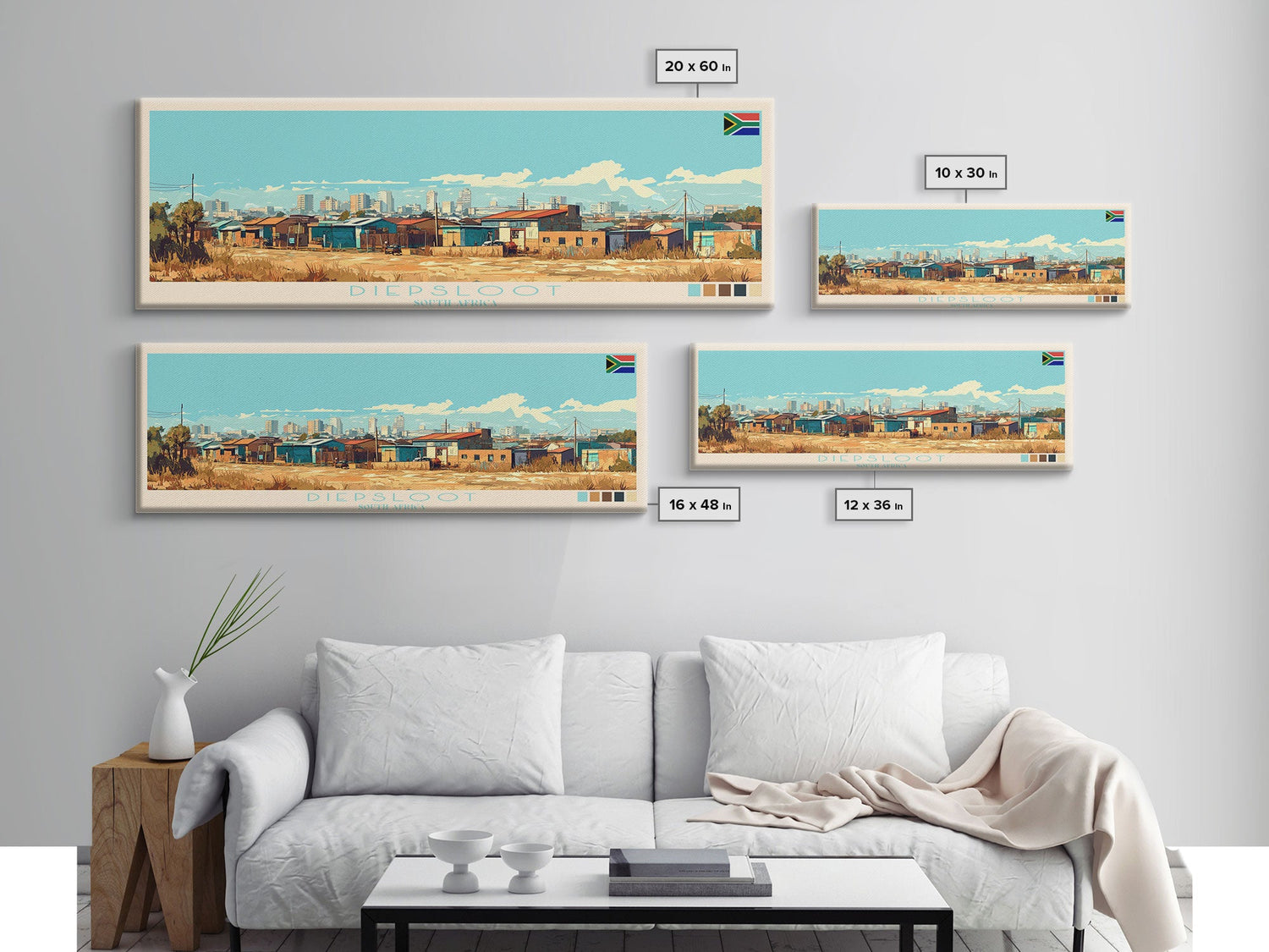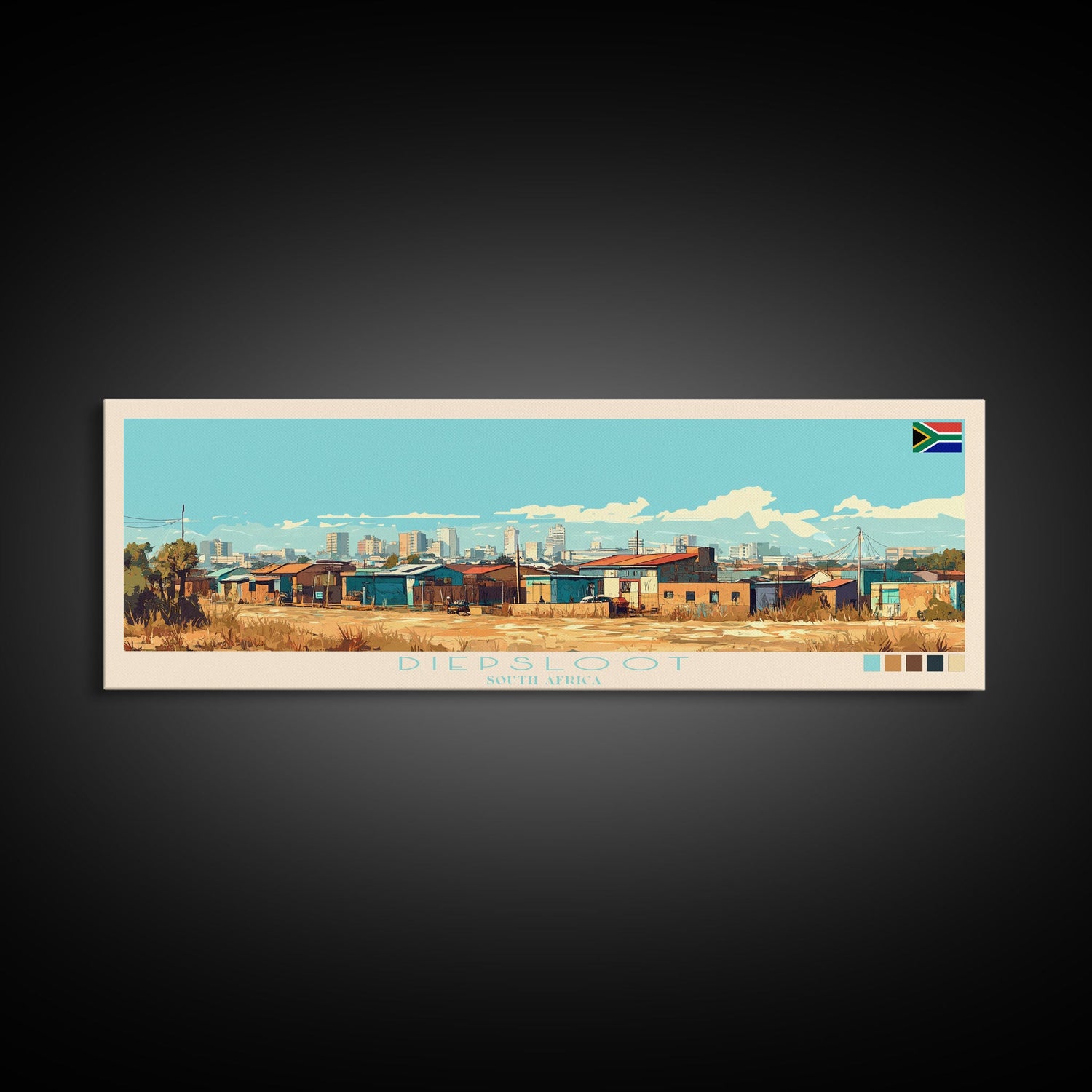 Diepsloot, South Africa Panoramic Travel Poster Canvas Print, Diepsloot, South Africa Painting, South Africa Art, Diepsloot Travel Art, Living Room Painting