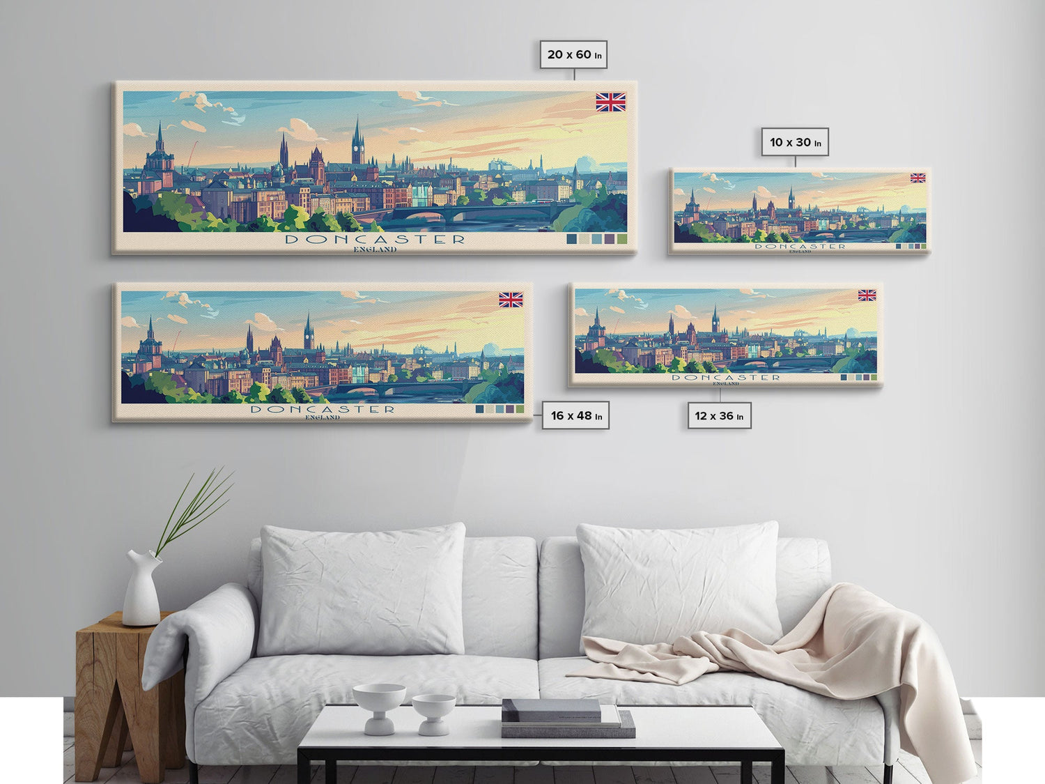 Doncaster, England Panoramic Travel Poster Canvas Print, Doncaster, England Painting, England Art, Doncaster Travel Art, Guest Room Painting
