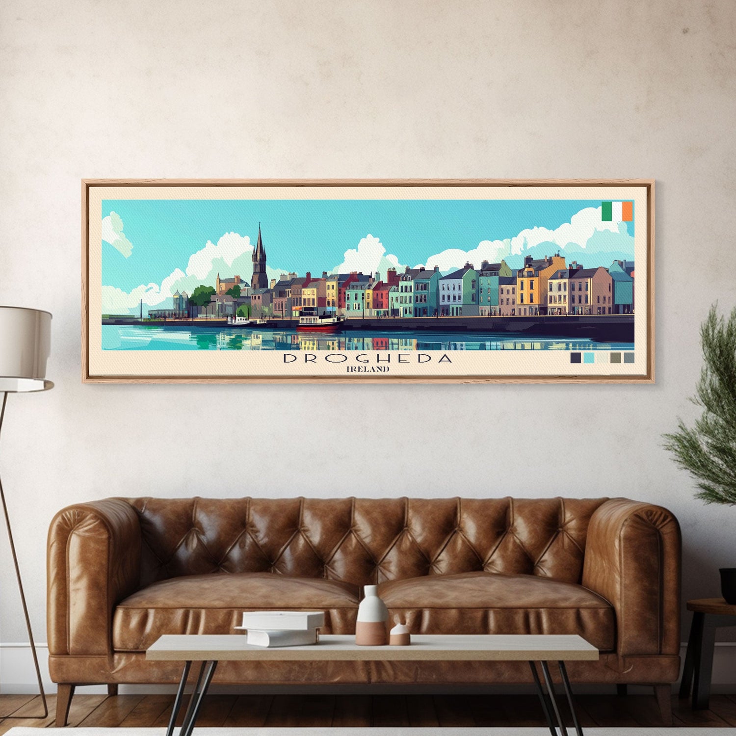Drogheda, Ireland Panoramic Travel Poster Canvas Print, Drogheda, Ireland Painting, Ireland Art, Drogheda Travel Art, Guest Room Painting