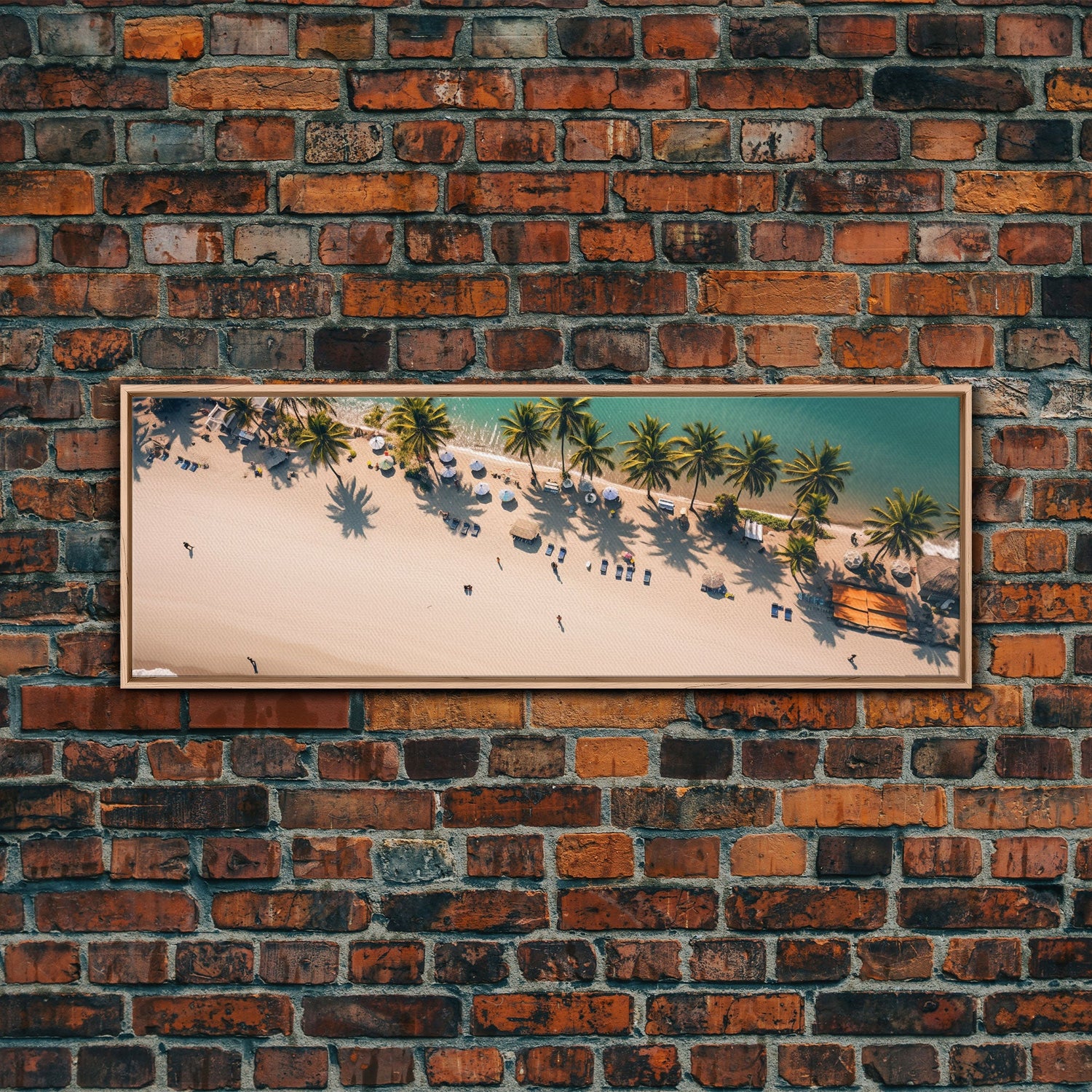 Drone Shot of Bora Bora, Vacation Art, Tropical Beach Photography Framed Canvas Print, Panoramic Bird's Eye View of Paradise