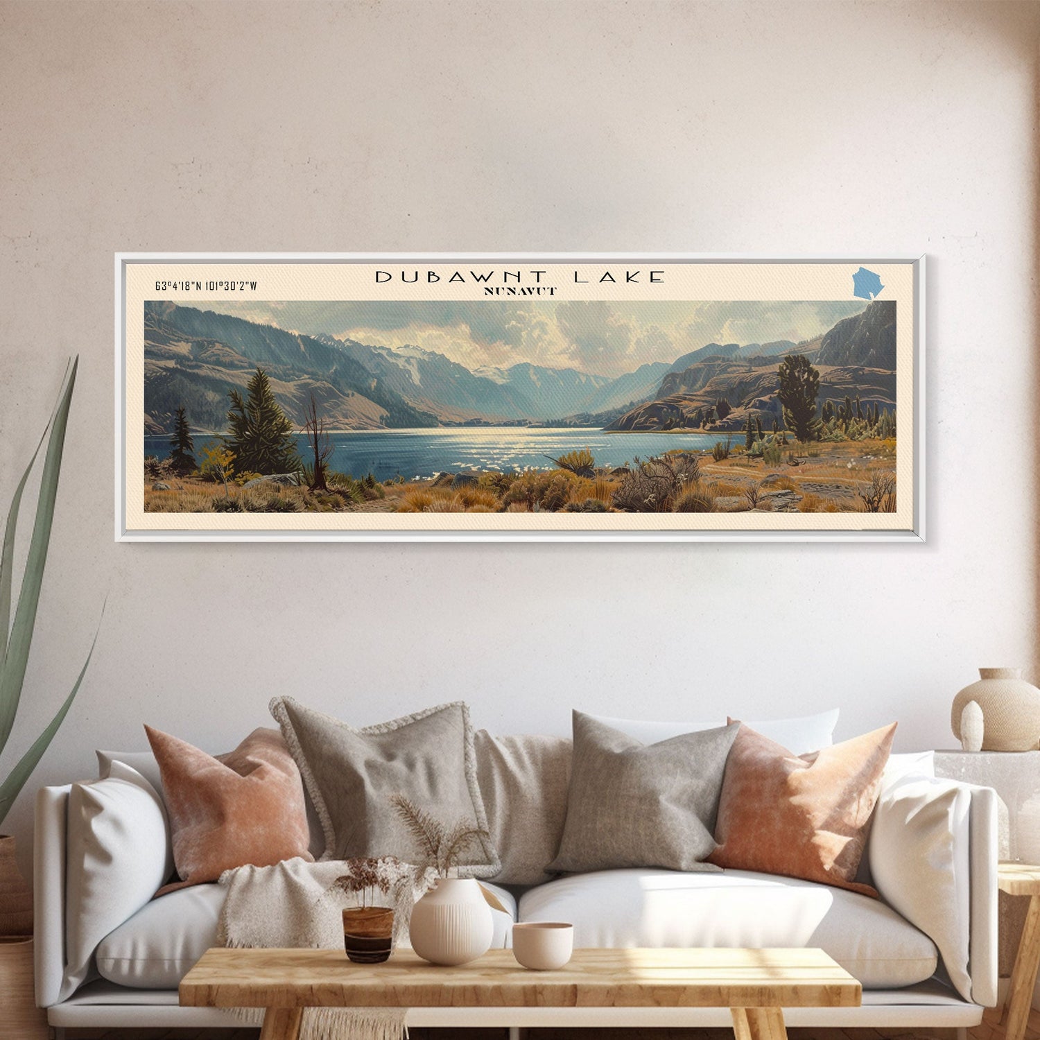 Dubawnt Lake Panoramic Framed Canvas Print, Lake House Decor, Wall Art, Travel Poster, Modern Lake Painting, Nature Art