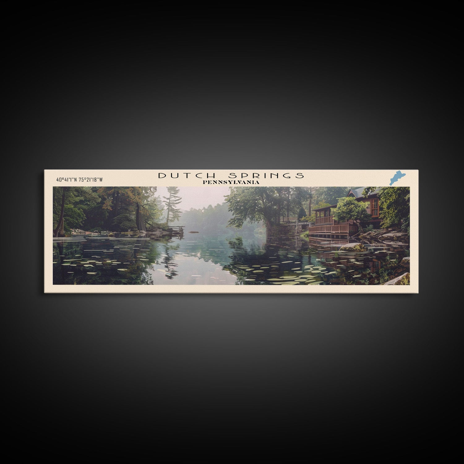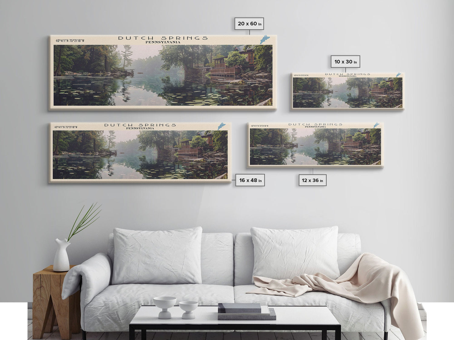 Dutch Springs Pennsylvania Framed Canvas Print, Lake House Art, Panoramic Wall Art, Travel Poster, Rustic Lake Painting, Home Decor