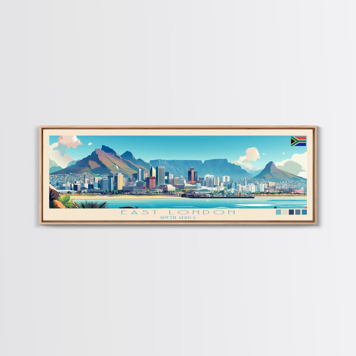 East London, South Africa Travel Poster Panoramic Canvas Print, East London, South Africa Painting, South Africa Art, East London Travel Art, Guest Room Painting