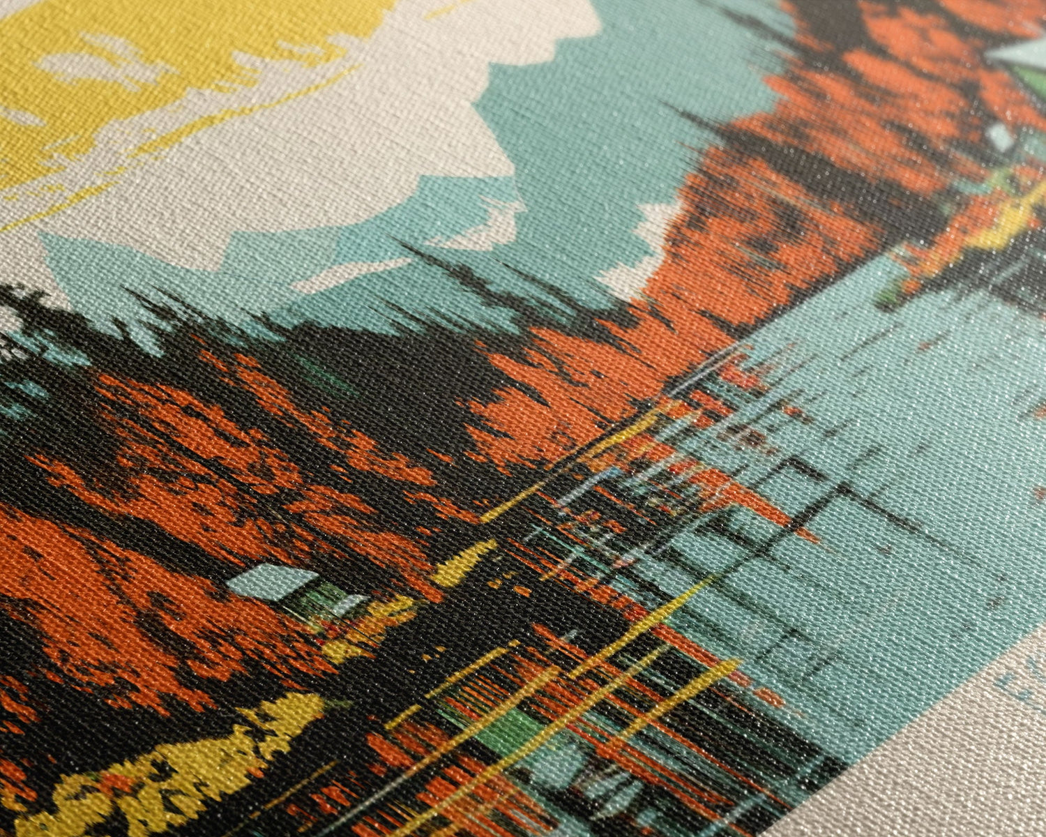 Most of our canvases are made in the USA, with the exception of canvases ordered with the light oak unstained frames, and any large canvases (24x48, 30x60, 16x48 and 20x60) ordered WITH a frame. These are temporarily made in and shipped from Europe, while we try to find a more consistent supplier in the USA.