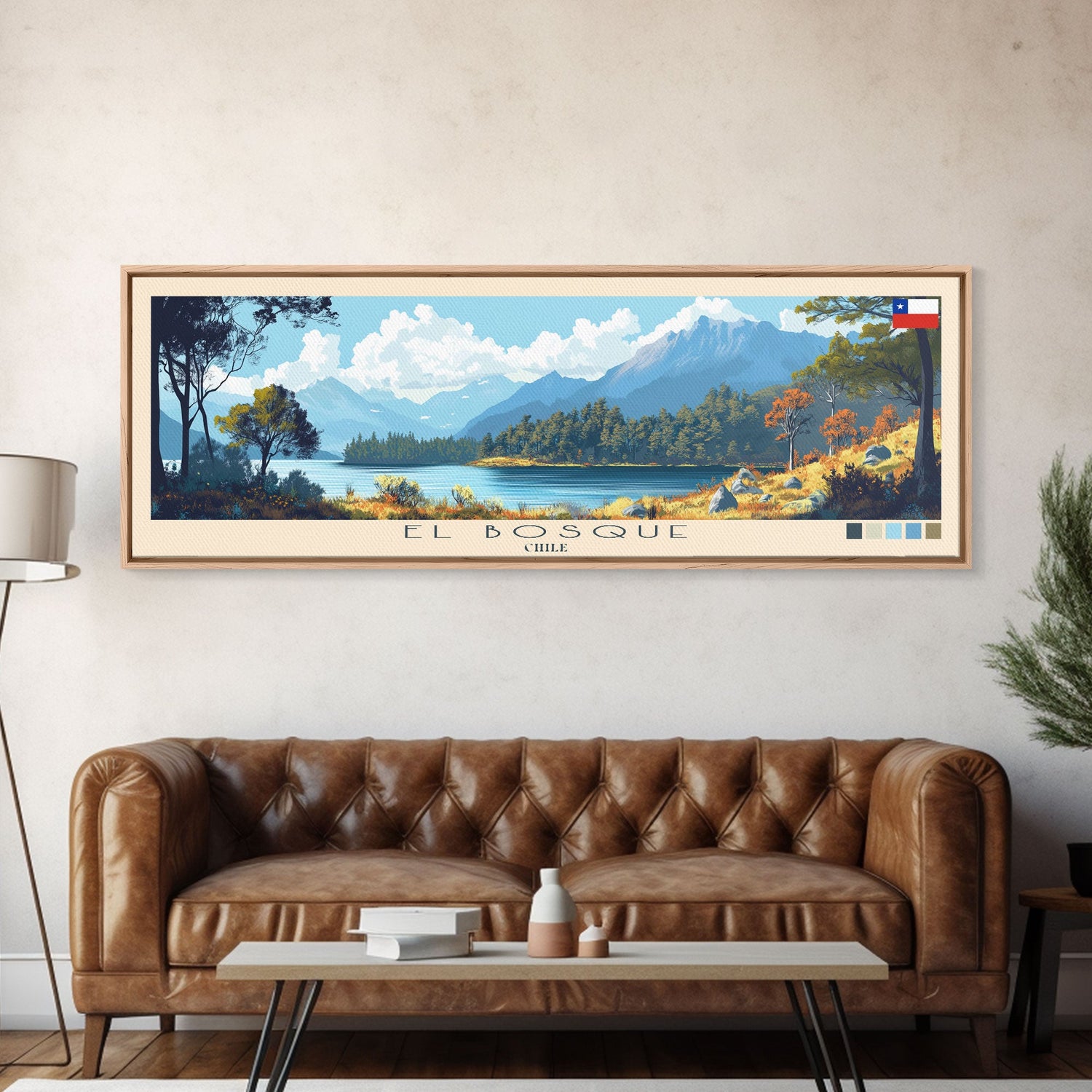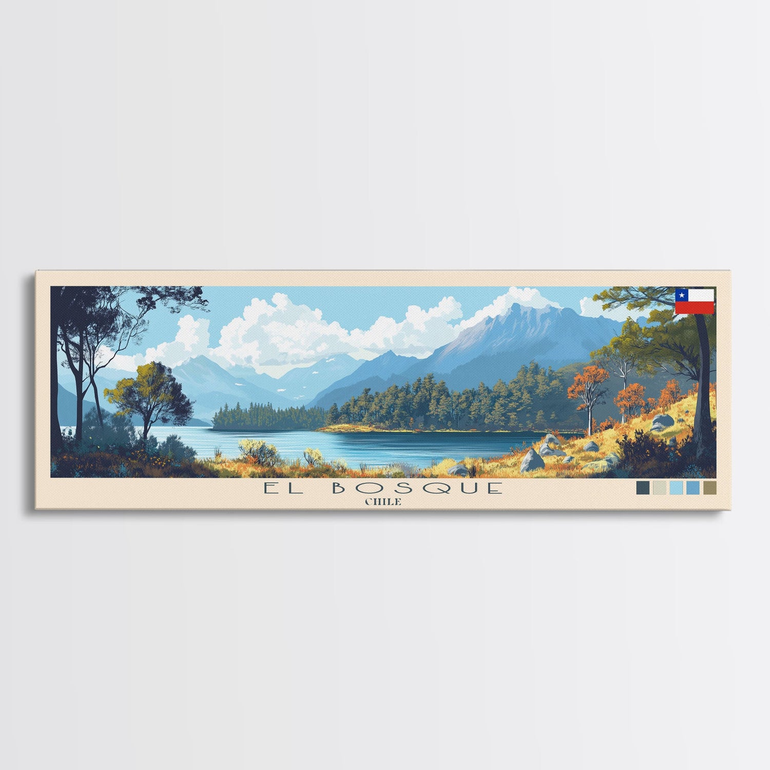 El Bosque, Chile Panoramic Travel Poster Canvas Print, El Bosque, Chile Painting, Chile Art, El Bosque Travel Art, Guest Room Painting