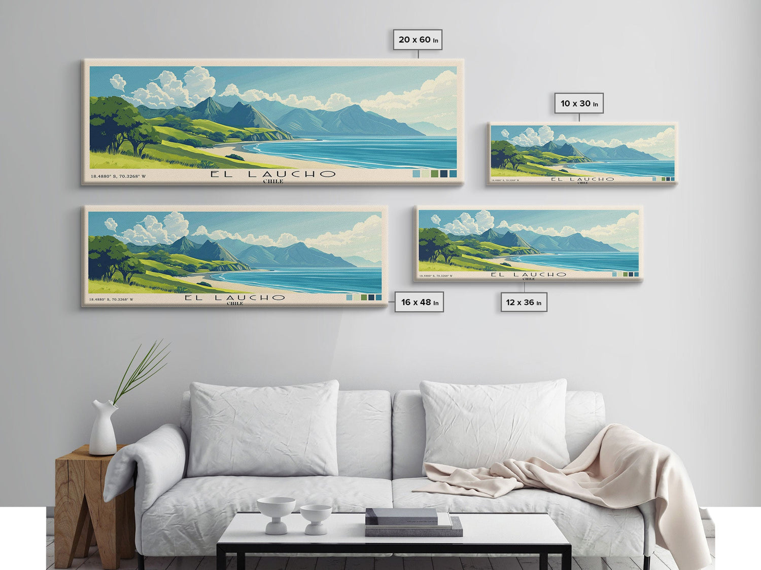 El Laucho, Chile Panoramic Beach Print, Vacation Gift, Chile Wall Art, Beach Painting, Beach Decor, Beach Painting