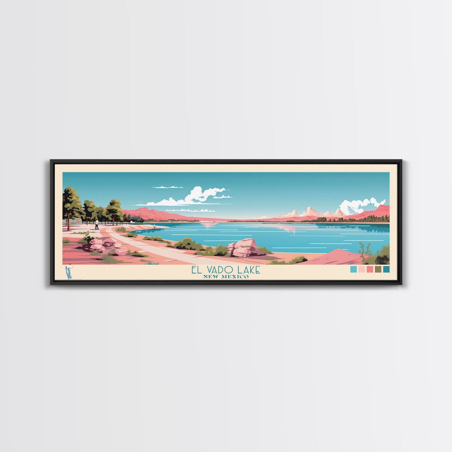 El Vado Lake New Mexico Framed Canvas Print, Panoramic Art, Midcentury Modern, Pop Art, Bedroom Decor, Travel Poster, Serene Lake Art