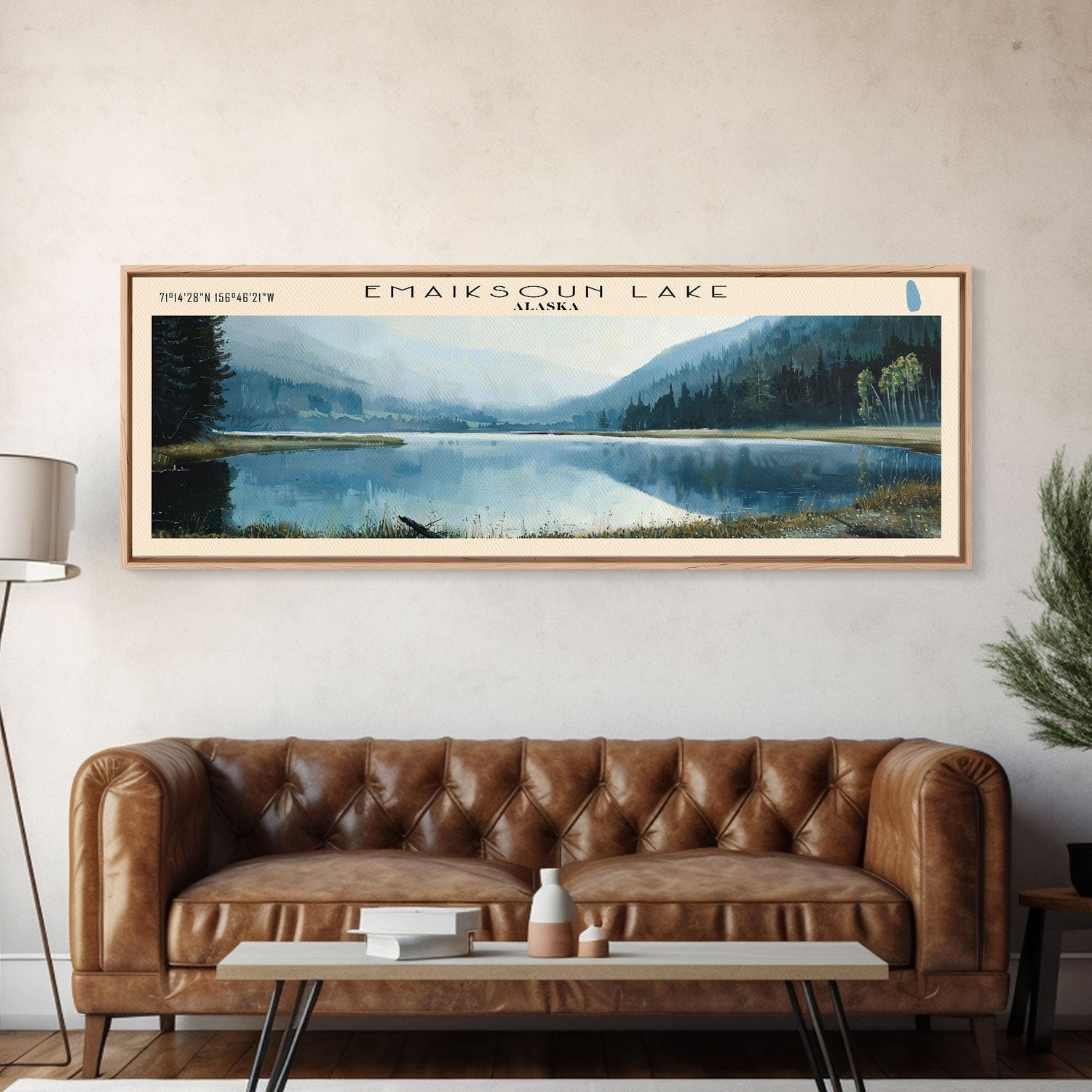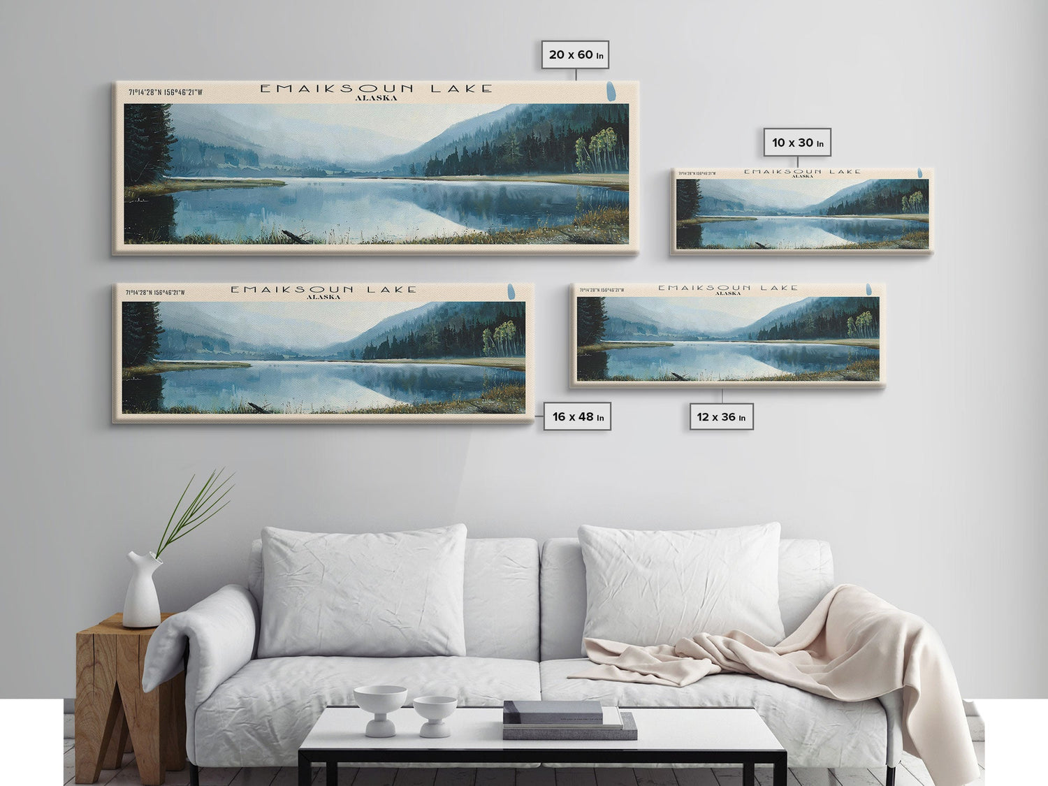 Emaiksoun Lake Framed Canvas Print, Lake House Art, Panoramic Wall Art, Travel Poster, Modern Lake Painting, Home Decor