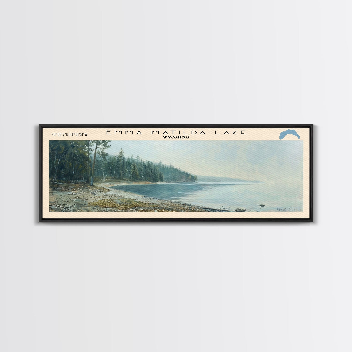 Emma Matilda Lake Wyoming Framed Canvas Print, Lake House Decor, Panoramic Wall Art, Travel Poster, Modern Lake Painting, Nature Art