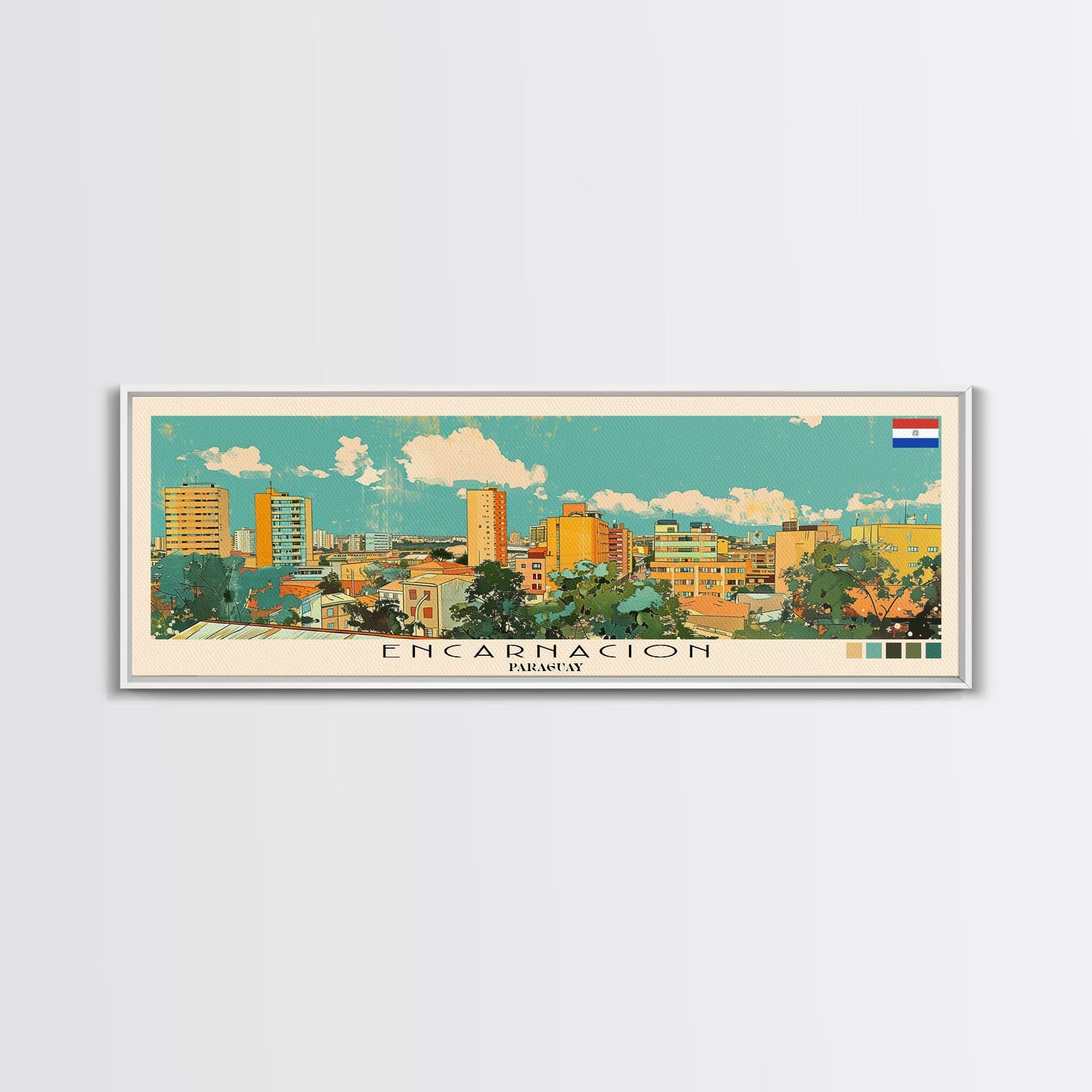 Encarnacion, Paraguay Panoramic Canvas Print, Encarnacion, Paraguay Painting, Paraguay Art, Encarnacion Travel Poster, Travel Art, Housewarming Gift