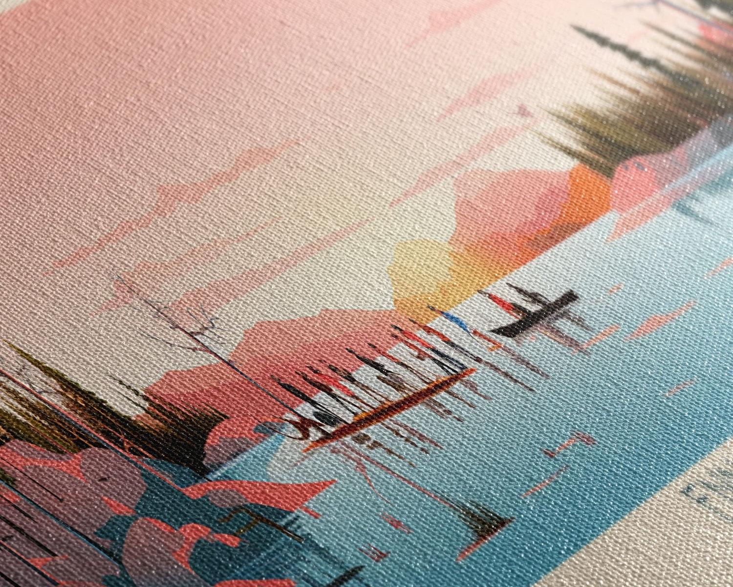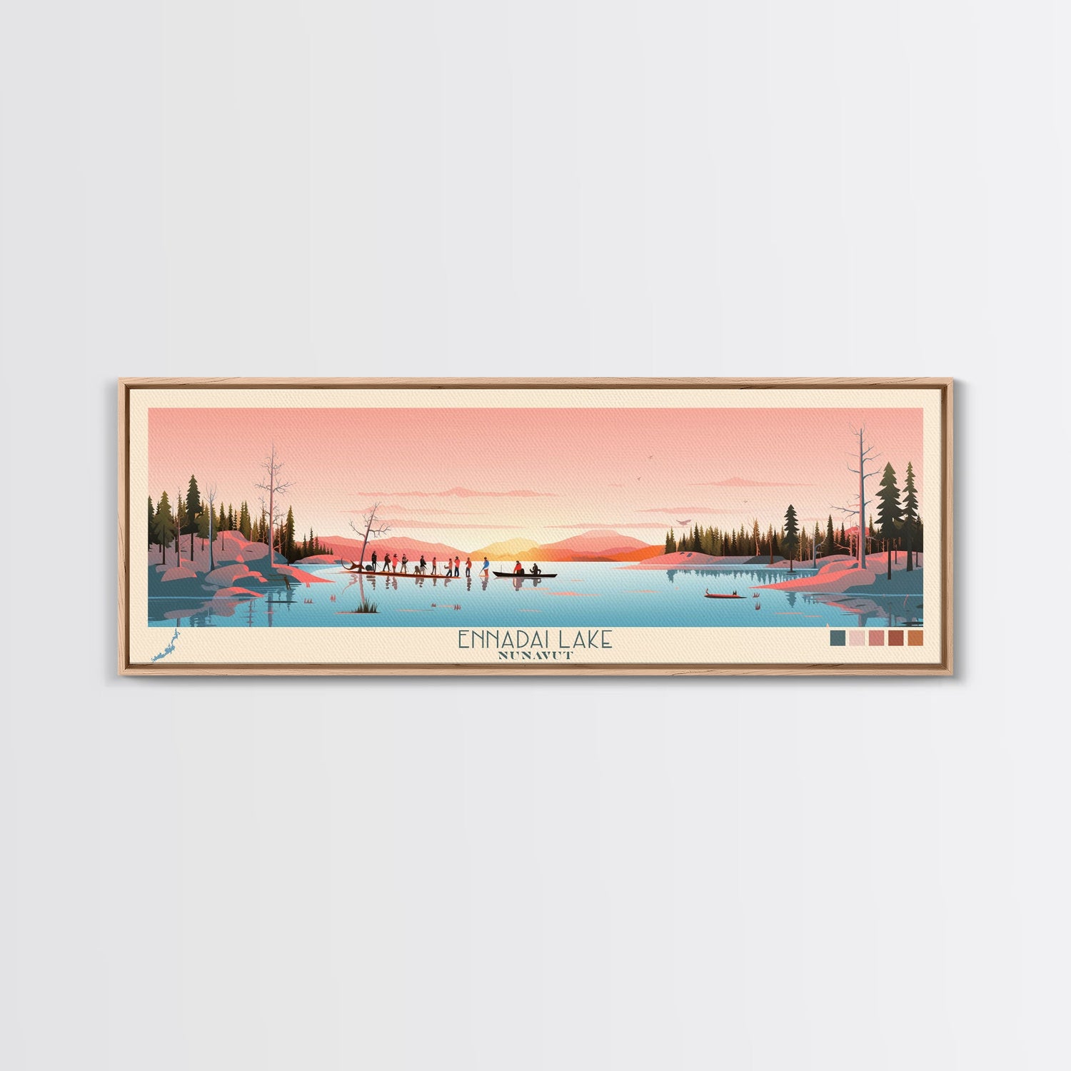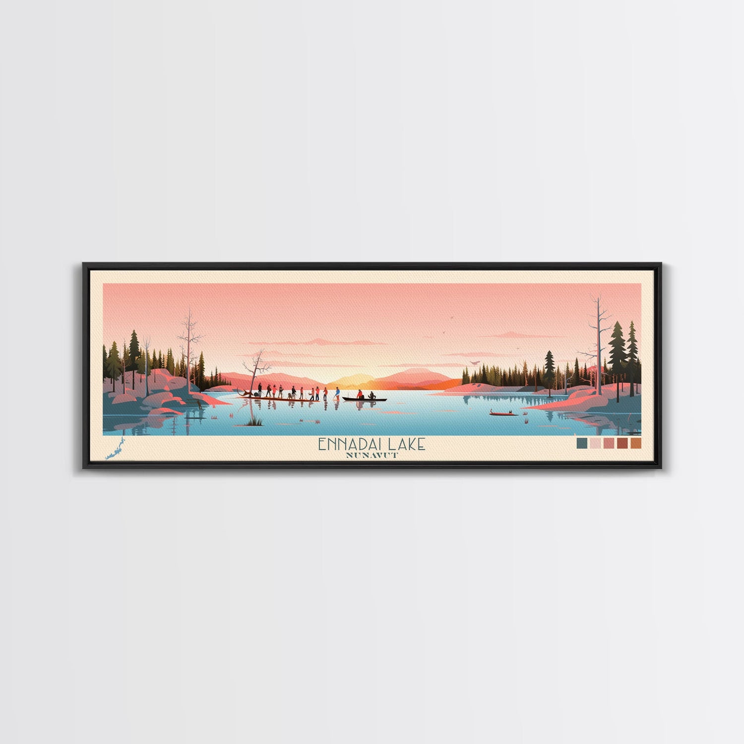 Ennadai Lake Nunavut Framed Canvas Print, Panoramic Wall Art, Midcentury Modern, Pop Art, Bedroom Decor, Travel Poster, Lake View