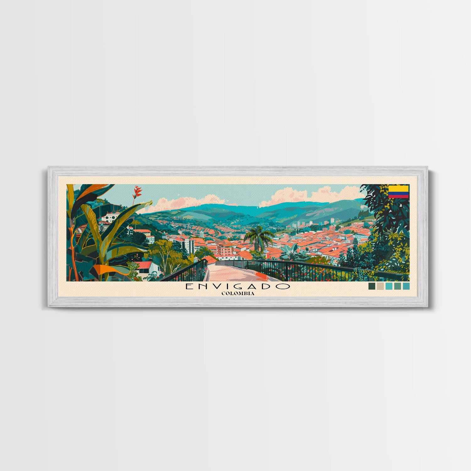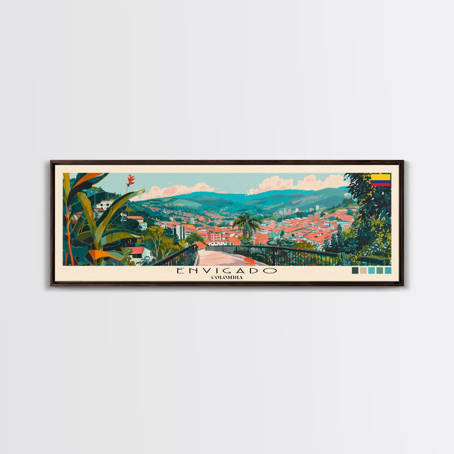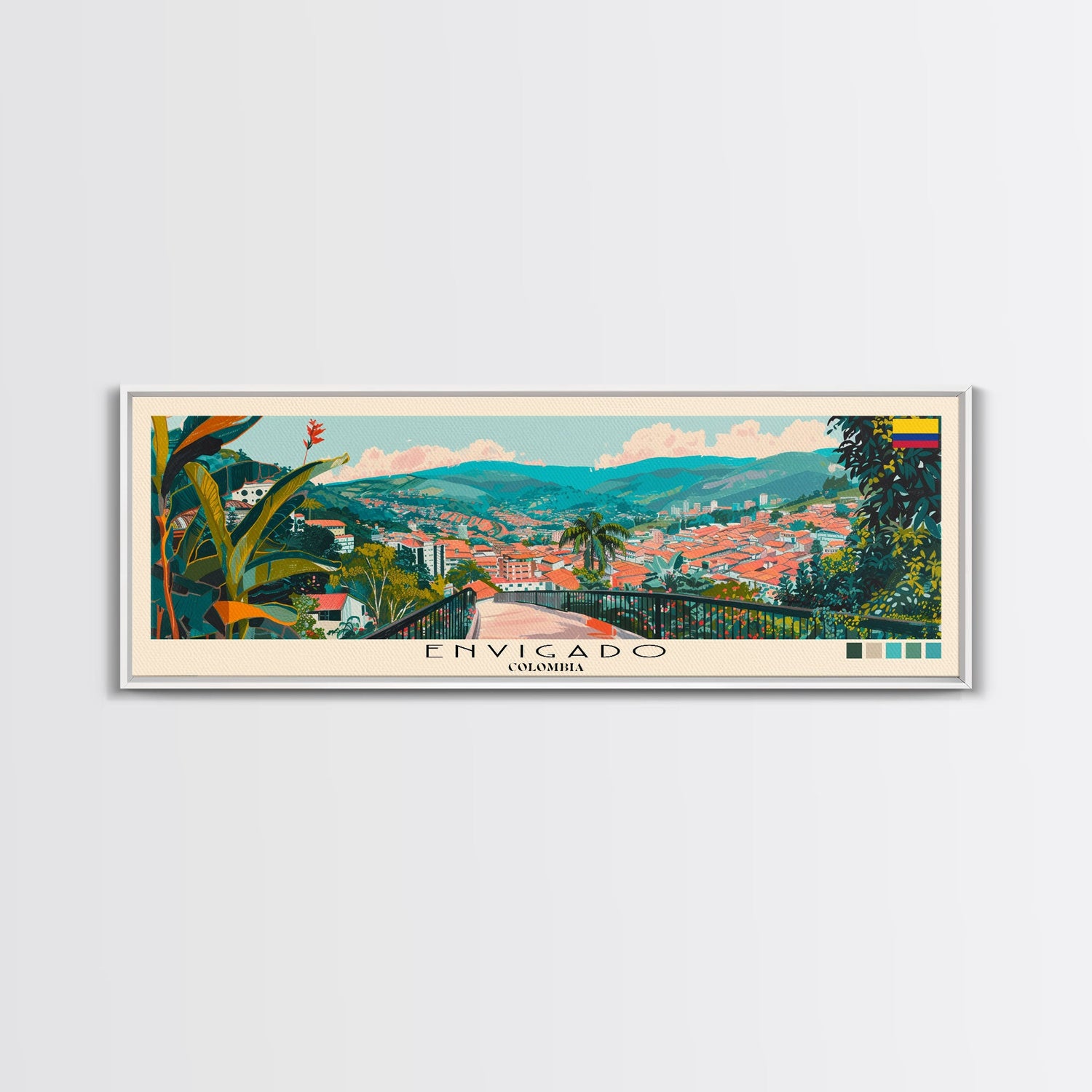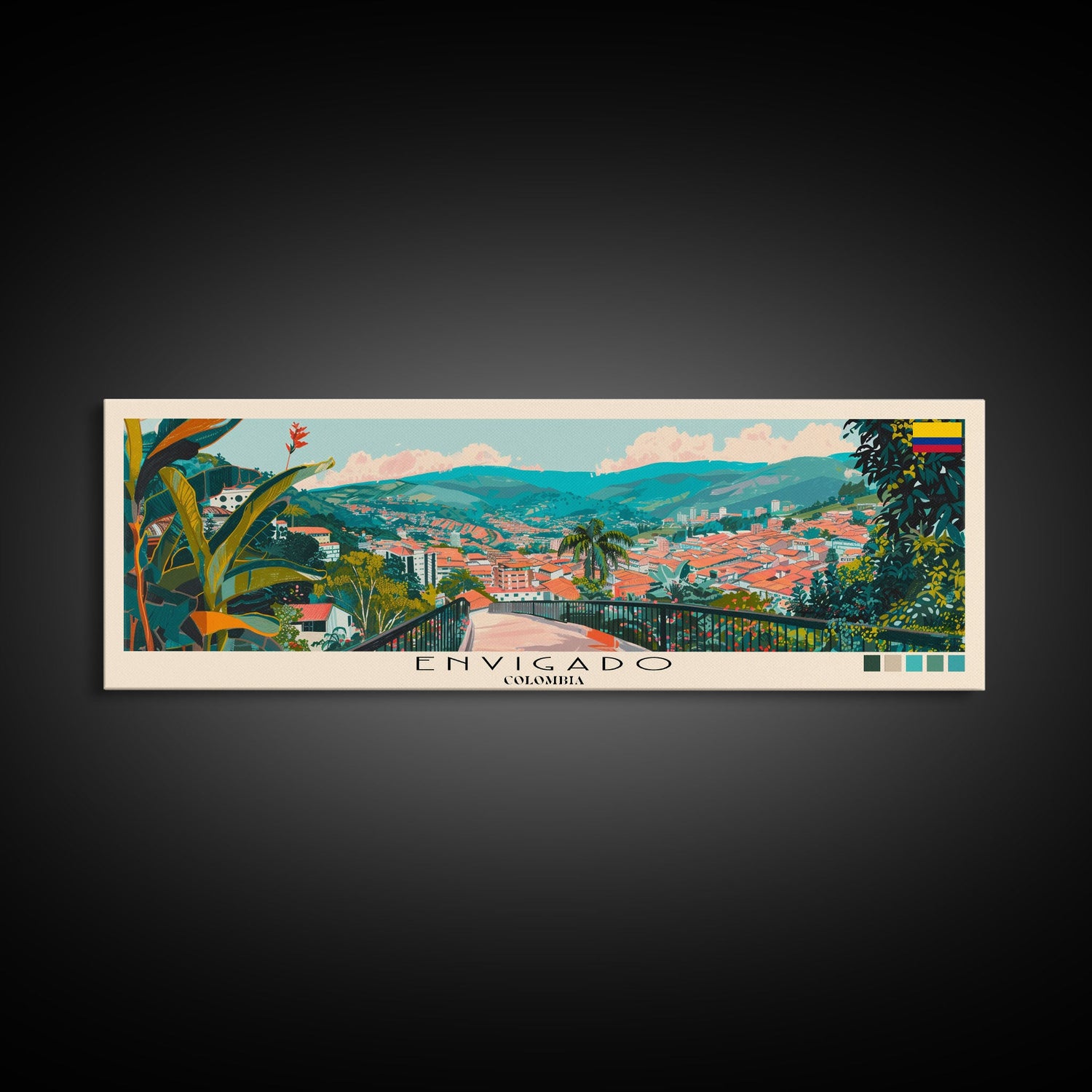Envigado, Colombia Panoramic Canvas Print, Envigado, Colombia Painting, Colombia Art, Envigado Travel Poster, Travel Art, Guest Room Painting