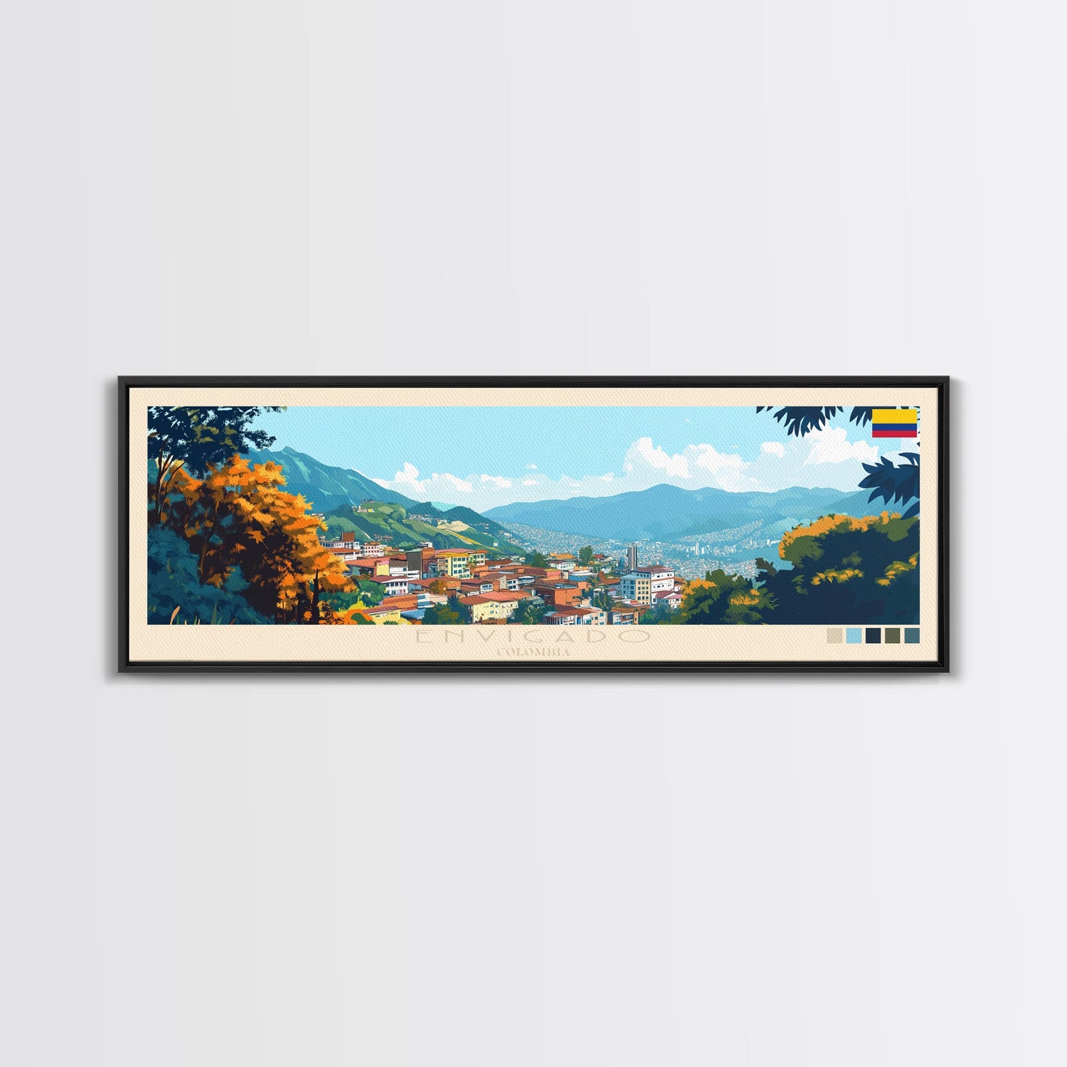 Envigado, Colombia Panoramic Travel Poster Canvas Print, Envigado, Colombia Painting, Colombia Art, Envigado Panoramic Travel Art, Travel Painting